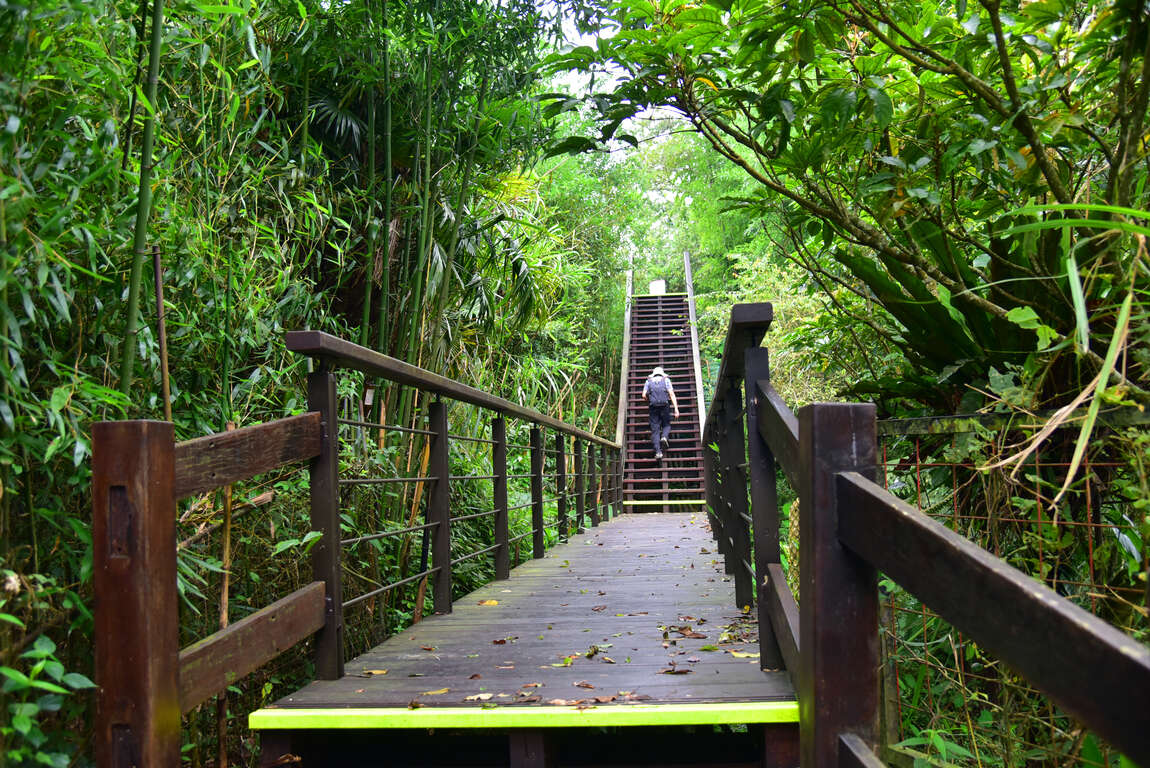 The entrance is at the 57.5 K point on Provincial Highway 18, next to the Meiyuan Hotel. It is a leisure trail that is around 700 meters long and takes around 40 minutes to walk there and back.
