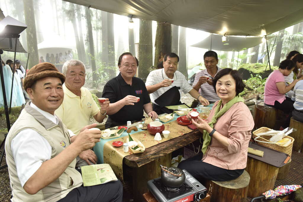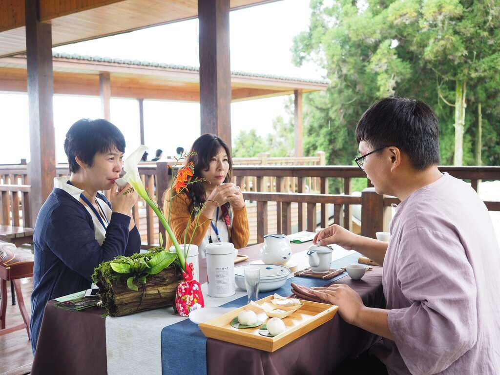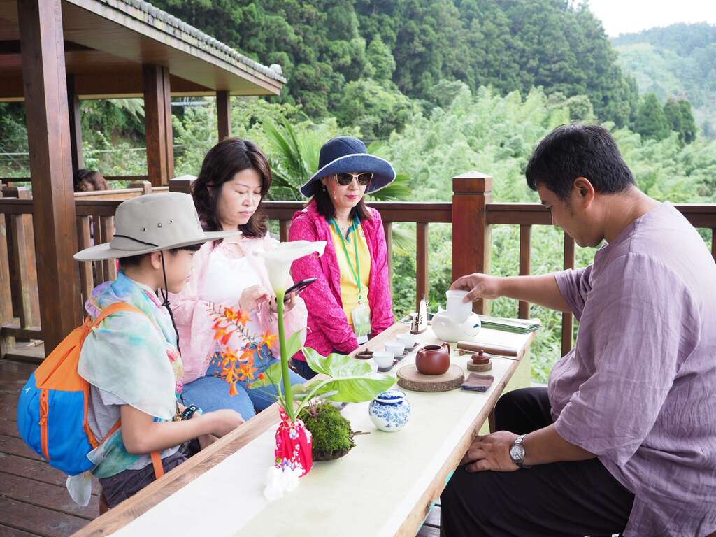 The Summer Forest Festival and the “2019 Formosa Summer Festival – Cooling Up the Mountain, Cooling Down the Sea” events worked together to hold the festivals in 3 excellent best-kept-secret summer forest locations – Dinghu Huanhu Trail, Fenqihu Incense Cedar Tree Forest, and Shizilu Station Viewing Platform. The various tea festivals are named after different solar terms and are hosted by each community using seasonal flowers and plants to enhance the atmosphere. The festivals are located at the following locations: Lixia Tea Ceremony Area in the square in front of Guanyin Rock in Dinghu, created by the Dinghu Community; Xiaoman Tea Ceremony Area in Dinghu Diyi Forest created by the Shizhuo Community; Mangzhong Tea Ceremony Area created by the Xiding Community; Summer Solstice (Xiazhi) Tea Ceremony Area at Longzhu Rock in Dinghu created by the Leye Community; Xiaoshu Tea Ceremony Area is in Shizilu Station Viewing Platform hosted by the Shizi and Gongxing Communities; Dashu Tea Ceremony Area in the Incense Cedar Tree Forest in Fenqihu, hosted by the Fenqihu Community. The festival also incorporates the significance of each solar term when each tea is served. The first and second servings of tea are Alishan Oolong tea, red tea or Jinxuan tea. The third to fifth servings of tea keep the other tea as the base and add ingredients to them that suit the current solar term, and serve them with appropriate tea pastries. There are also poets chanting poems that describe the solar terms or tea, encouraging tourists to chant along. Each guest will also receive a limited and exclusive teacup made for the Four Seasons Tea Tour Festival.