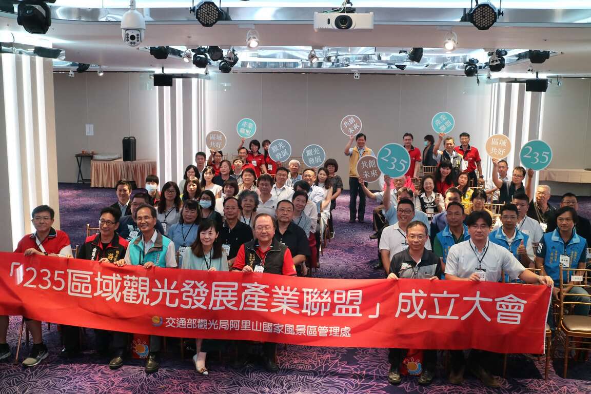 To promote the newly established 235 Regional Tourism Development and Industry Alliance, the Alishan National Scenic Area Administration (hereinafter referred to as the Administration), Tourism Bureau, Ministry of Transportation launched the inaugural conference at a hotel today (on the 28th). The Director of the Administration, Ma Hui-ta, and over 60 members of the alliance in Chiayi County and City joined the signing ceremony to demonstrate the joint commitment of Chiayi County and City in promoting high-quality tourism. Attendees of the conference included Chou Hen-kai, Deputy Director of Alishan Forest Railway and Cultural Heritage Office Forestry Bureau, Council of Agriculture (COA), Executive Yuan; Cheng Chun-teng, Secretary of Chiayi Forest District Office, Forestry Bureau, COA, Executive Yuan; Chang Wan-fen, Director of Tourism and Information Department, Chiayi City Government; Li Mao-chung, Deputy Director of Culture and Tourism Bureau, Chiayi County, as well as leaders and professionals from over 20 tourism industry associations of Chiayi City and County.