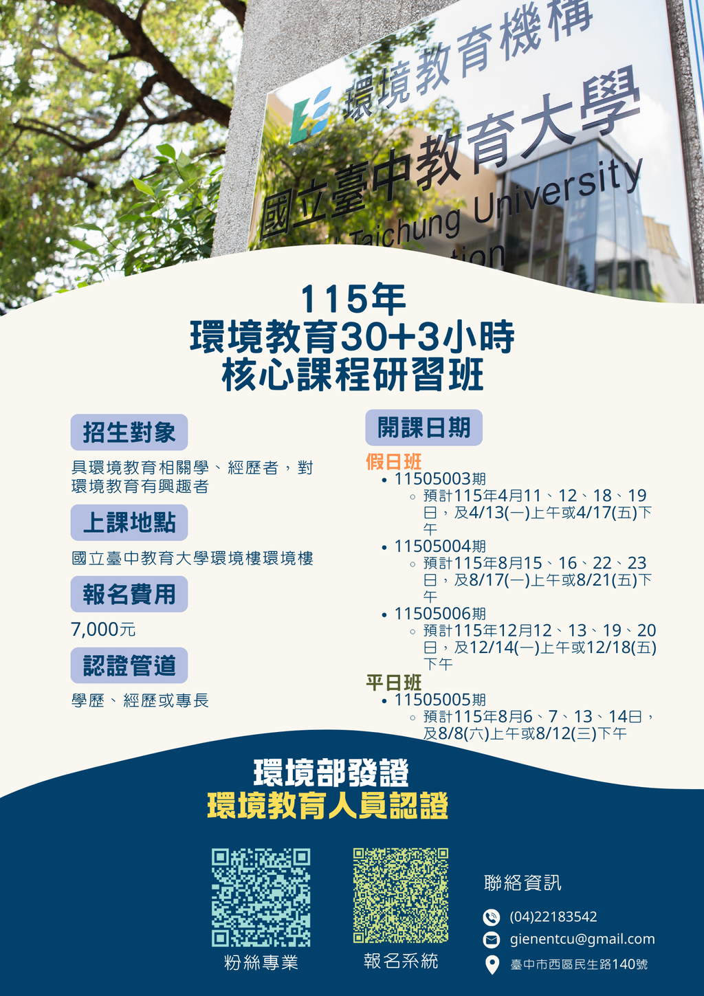 轉知國立臺中教育大學115年度辦理「環境教育30+3小時核心課程研習班」。