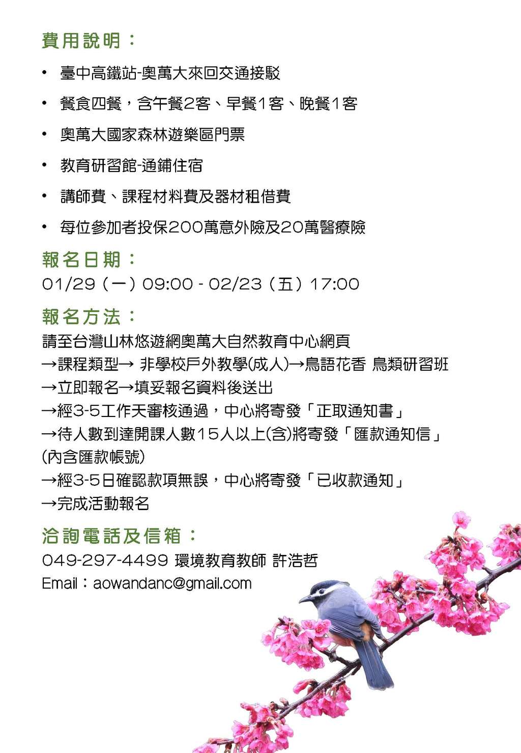 奧萬大森林遊樂區「鳥語花香—鳥類研習班」