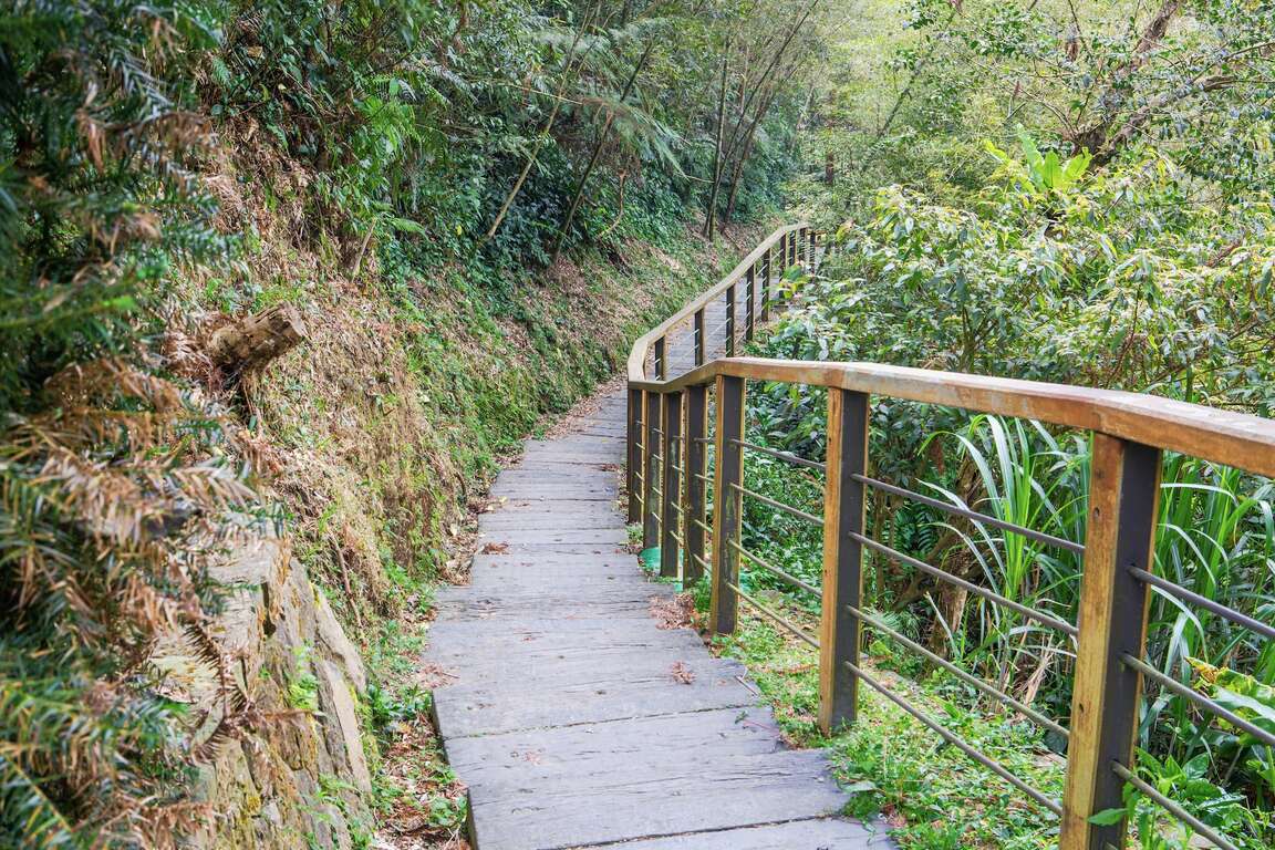 「雲の南」道は、太平雲梯と孝子路歩道をつなげています。歩道には3つの涼亭が設置され、出発目印から最初の涼亭までは上り坂です。合計268段の階段があり、所要時間は約10分です。涼亭に到着したら、そこから雲嘉平原を見下ろし、太平村の景色を一望して茶の海と緑林の景観を望めます。雲霧に覆われていたら、また趣きの違う景色を見ることができるかもしれません。