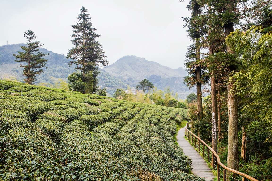 多くの方は太平雲梯を見終わったあとに、出口からビジターセンター方面へと進んでしまい、もう一方の全長約1kmの「雲の南」道を見逃してしまいます。歩道は、亀山の中腹に延々と沿っていて、夢のような茶園景色を眼下におさめることができる、最新の撮影スポットとなっています。