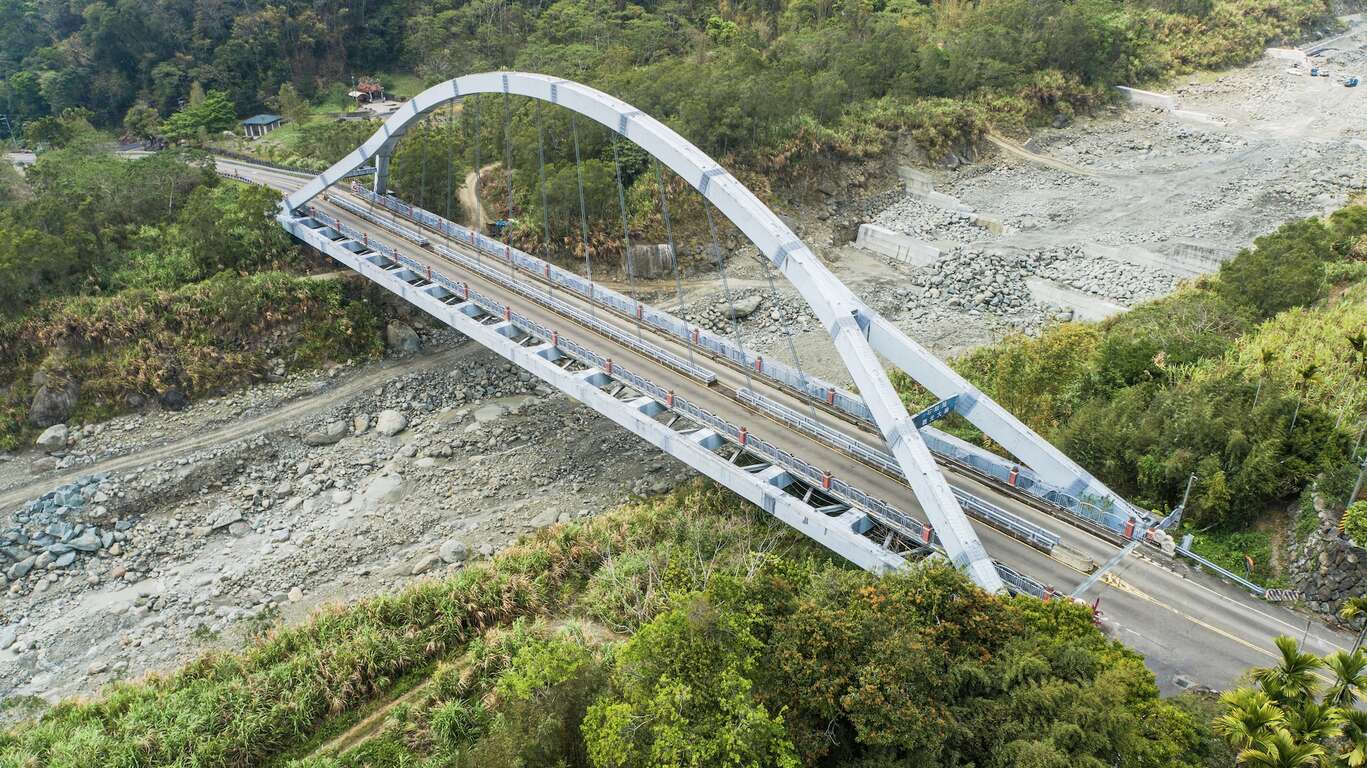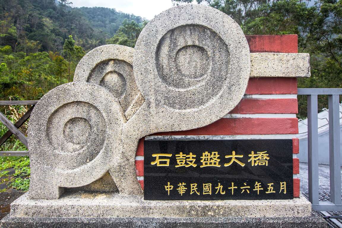 921 대지진으로 외부로 나갈 수 있는 교통 수단이 불편해진 펑산. 펑산은 마을 외부에 있는 관광 도로와의 연결을 위해 1억 7천 대만 달러 이상을 투자해, 2007년 현재의 관광대교를 완공했다. 그리고 지속적으로 다리의 경관 시설을 조성하고 주변 환경 미화 및 테마 관광지 기획에도 힘을 쏟았다. 석고반 대교는 단경간 하로교로, 총 길이는 140m이며 교량 중간에 다른 교각은 존재하지 않는다. 교량 양 끝에 있는 잠함을 기초로, 중앙에 위치한 고리는 각각 양측에 위치한 1개의 차로 그리고 인도와 연결되어 있다. 양 끝 램프부의 길이는 280m이고 순 너비는 7.5m이다. 이는 자이현에서 가장 긴 경간 교량으로 인근 산사태 공원과도 연결된다. 밤에는 알록달록한 교량의 조명이 계곡을 가로지르며 고즈넉한 산과 계곡을 밝혀 보는 이의 눈을 즐겁게 만든다.