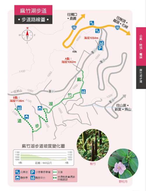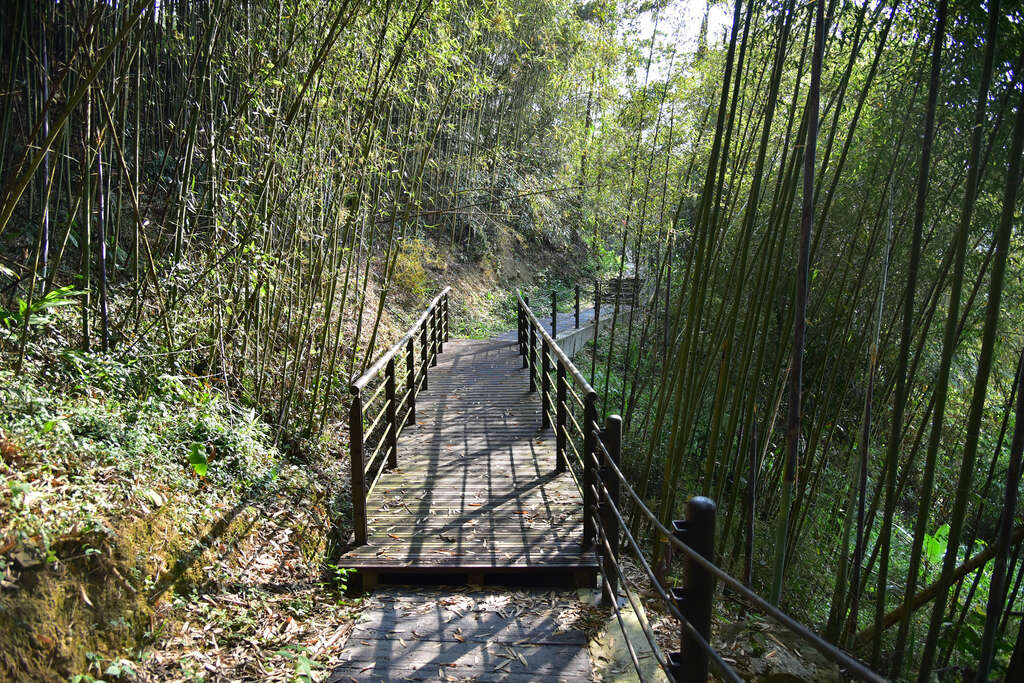 Mazhuhu is located in the central part of Gongxing Village. The low-lying terrain here makes it easy for mazhu (sweet bamboo) to grow, and since “hu” means “low-lying” in the Taiwanese dialect, hence the name “Mazhuhu”. Mazhu was once used to make paper and bamboo rafts, however, when the demand decreased, Makino bamboo, one of the important money making crop here, took over. About 49.7 kilometers on Provincial Highway 18, where the exit that turns into Chiayi County Road 131, you will come to a parking lot and an expansive viewing platform. After you have a chance to enjoy the rolling mountains ahead, then drive along Chiayi County Road 131 for about 50 meters, and you will arrive to the north entrance of Mazhuhu Trail. The altitude of Mazhuhu Trail is between 1,050 – 1,150 meters. The starting point is at the junction of the wood steps and Industrial Road. The first half section of the trail is flat, while the second half of the section is a hiking trail that offers a nice view at the top. The first section is a forest with bamboo and other plants. A hike here allows you to understand the local industry and culture. The faux wood steps on the walkway are easy on your feet, and the stone benches along the trail provide a pleasant resting spot for hikers. The last section of the trail is wood steps built along the slope of the hill. Since this section is not long, it’s not particularly difficult. As you climb up slowly, the view becomes more broad. When you reach the observation pavilion, your reward for this trip is the open, unobstructed view. If you want to see the view from the mountain ridge, then continue upward. The viewing platform at the highest point offers a 360-degree view of the area, like the mountain range and the traffic flow on the Alishan highway. The refreshing scenery at the summit will be the most beautiful image on this trip.