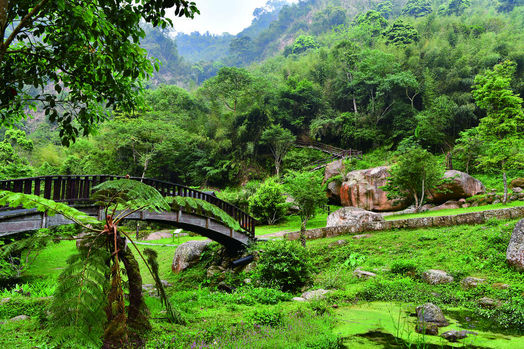 The entrance of Yuantan Trail is in Yuantan Creek Ecological Park, near the 71.5-km marker of County Highway 166. Parking is available opposite to the park. In addition to Yuantan Trail, there is another flat and accessible walking trail. Interesting landscape features from geomorphic processes can be observed on the trail along Yuantan Creek. Right next to path you can find potholes drilled down by descending water carrying sandstones. The banks of the creek have also been eroded by the currents and formed cliffs, canyons, and tiered waterfalls. In addition, you can find historic sites of camphor kilns and bamboo shoot drying huts not far away. After seeing Xiangshan Waterfall, take the stairs up. After first seeing tall cliffs, passing through deeper and narrowing valley landscape, and crossing over the river covered by giant rocks, you will arrive at the botanical garden deep in the col, built along Yuantan Creek and surrounded by primary forests. In the garden, there is an ecological pond and the bridge over the pond is a great firefly-watching spot. On the lush green grass field, giant rocks stand. Find the two rocks between which only one person can pass through. Take the stairs up from there and enter the circular trail (*the following directions are counterclockwise). On the side, there is a split road towards Ruishui Old Road which leads to Shuisheliao. The boardwalk right next to the cliff will sometimes be crossed by giant rocks or big tree trunks for which you will have to dodge. Taking steady steps downhill on the trail, once you are seeing the botanical garden again it means you have completed the challenge of this trail.