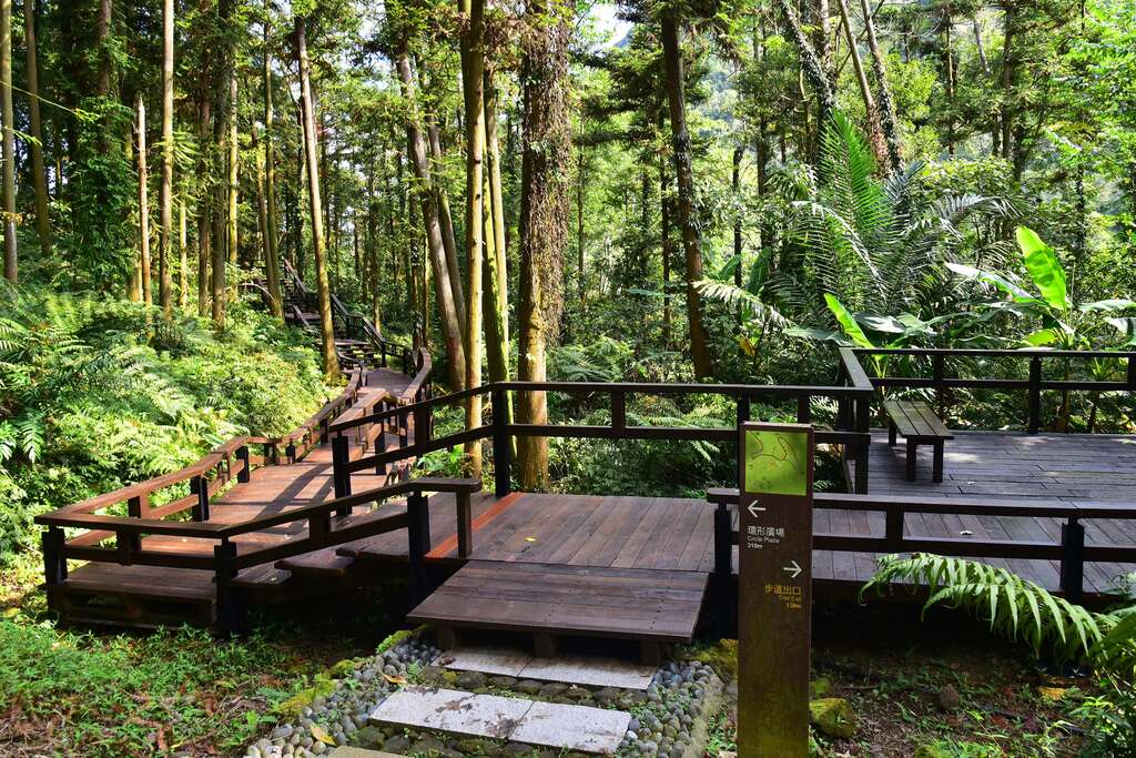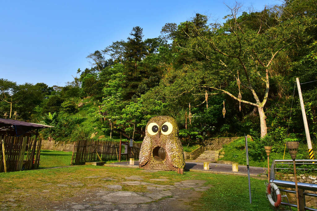 到了3、4 月,油桐花盛開,雪白的花朵不論在樹梢,或飄落地上的四月雪,都增添了不少浪漫景象。過了位於轉折點的環形廣場,穿過土匪山意象的牌樓,由岩塊、鵝卵石組成的石階步道,則營造出另一番古樸趣味。位於步道最高點,嶄新的休憩廣場,設計結合了地域環境特性與在地文化等元素,不僅可感受本區頗具特色的風土人文, 體驗周邊的自然生態景觀,也是戶外教學的極佳場域。隨著一路往下的石階步道,來到一處三岔口。您可選擇回到環狀步道的起點,或繼續直行走完全程。