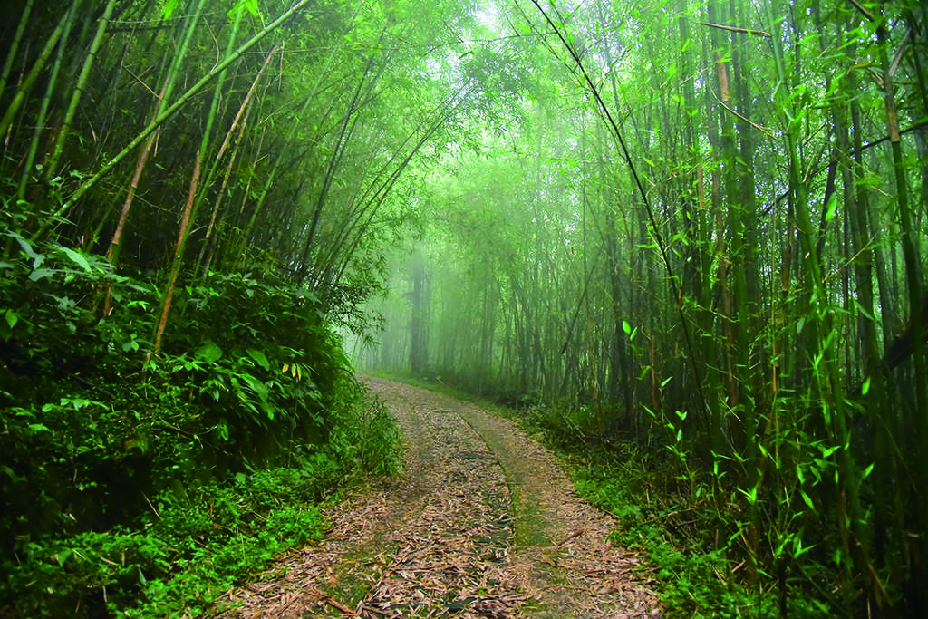 原本是採集、運送山區物產的小徑,在「台18 線」63.4 公里處轉進產業道路,即抵達南端出入口。從南端進入,有滿山茶園及杉木點綴其間。中段為茂密的孟宗和轎篙竹,水泥和植草磚共構的路面, 雖有枯黃竹葉覆蓋,但仍須防滑。