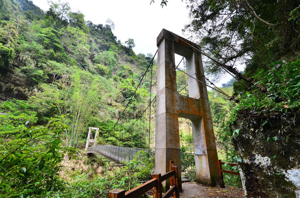 一旁跨越溪谷的情人吊橋,橋寬剛好可容納兩人並肩而行,吸引戀人眷侶駐足,遠眺蝙蝠洞、燕子崖及溪谷兩側的峭壁雄峰,並留下儷影成雙的畫面。而情人吊橋與圓潭之間的路段,坡度稍緩,同樣經過一段沿溪而行的山野叢林後,再次遇見濃密的竹林,也顯示離圓潭不遠了。此外,透過「圓潭˙雲潭˙青年嶺聯絡步道」也可抵達圓潭生態園區或雲潭步道,讓行程路線的更加多元。