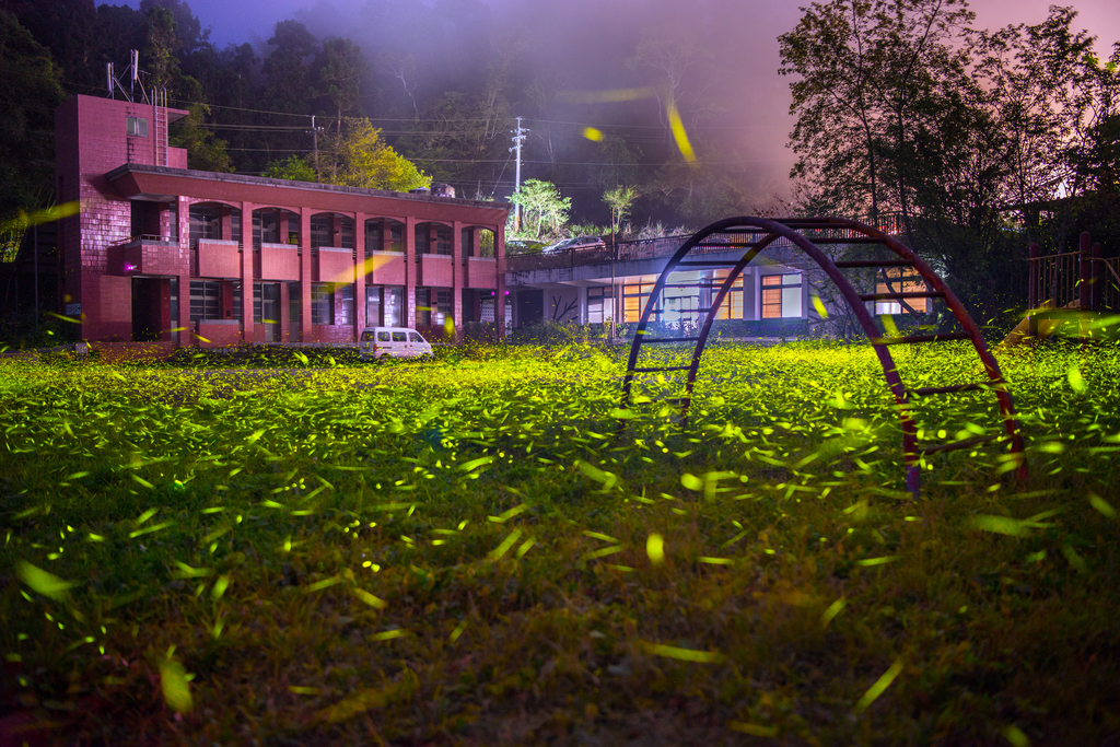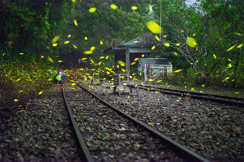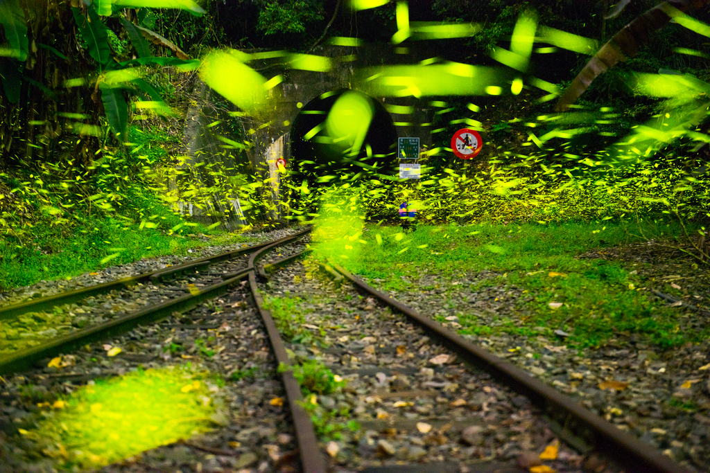 • 景點設施-銅牌-楊仁教-森林鐵道山洞外滿天飛舞綠精靈