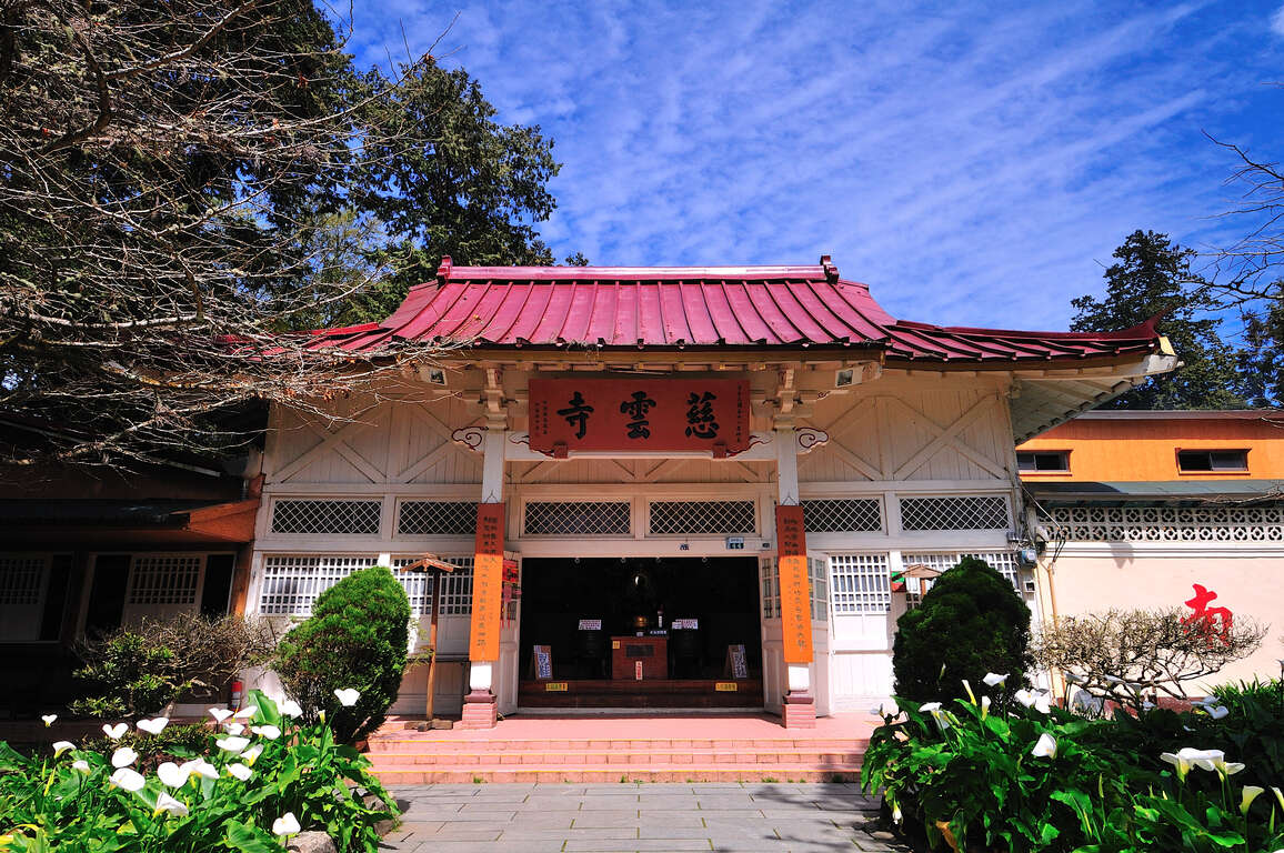 慈雲寺建於1919年,因阿里山山水秀麗、靈氣匯聚,與印度靈鷲山的聖地意象相似而興建。寺內供奉釋迦牟尼佛像,外層以銅鑄工藝打造,內部以金砂妝飾,展現莊嚴肅穆的佛教氛圍,佛像更有著「千年古佛」之稱。