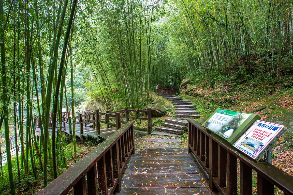 園區內的步道以木棧及石壁為主,環山步道除了木棧道外,還有仿木階梯步道平穩好走,景緻極佳,圓潭溪流經的地層屬砂頁岩互層,由於節理發達,所以有多階層的瀑布及壺穴、高聳的峭壁、溪谷窄、坡度陡等特徵,是觀察中海拔溪谷地景的最佳地點。此外,其環境水氣充沛、溼度極高,適合性喜潮濕的著寄生植物生長,常見的樹木有大葉楠、香葉樹、山香圓、台灣朴樹等,著生植物則有山蘇及崖薑蕨。特殊的地形與環境條件,羅織出此園區無比豐富的生態體系。