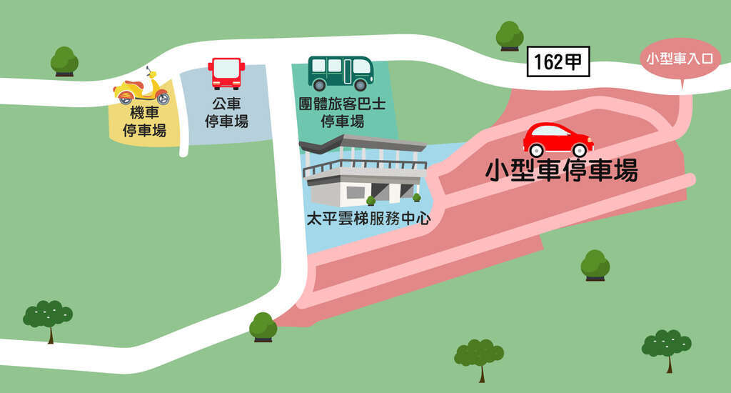 於梅山搭乘太平線公車旅客請將車輛停放在指示位置