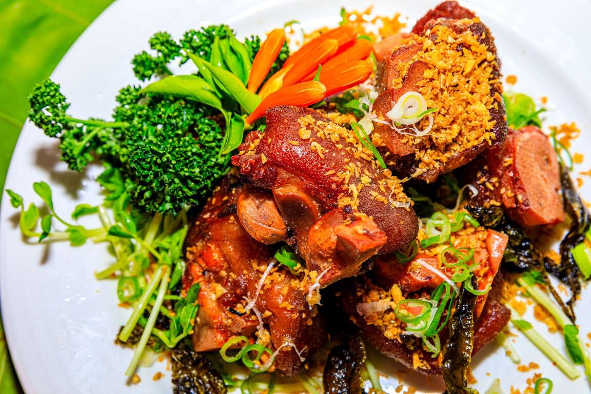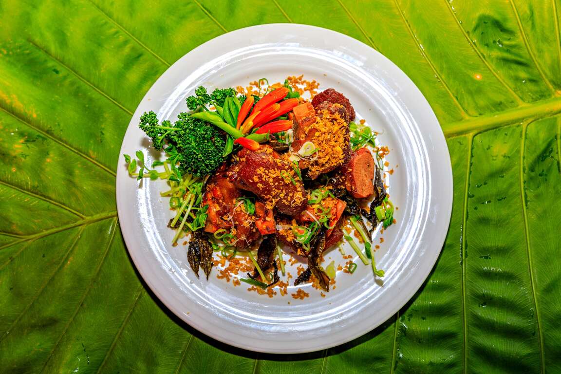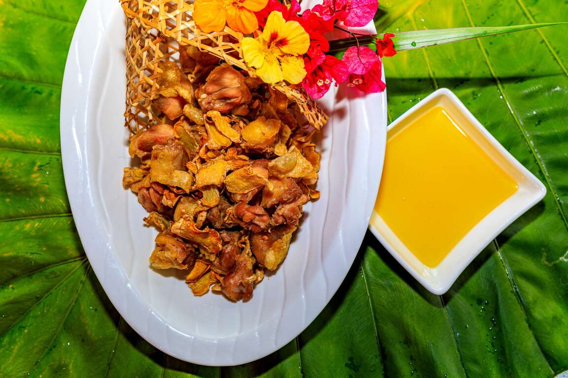 來到鄒族文化部落一定要吃的就是原住民特色風味餐,熱門菜色「金萱茶香東坡肉」是使用上等黑豬五花肉,搭配阿里山樂野村金萱烏龍及十年以上老茶滷製而成口感軟Q,油而不膩,又可品味淡淡的茶香,是到阿里山茶鄉必選之菜!「阿里山苦茶油雞」是由阿里山樂野部落放山雞及生薑加上阿里山新美部落自製苦茶油,苦茶油雞是將雞肉簡單的以苦茶油、薑片及些許的米酒調味,鮮嫩的土雞肉,帶著濃濃的苦茶油香氣,且苦茶油的不飽和脂肪酸高達83%,對人體相當有益。
