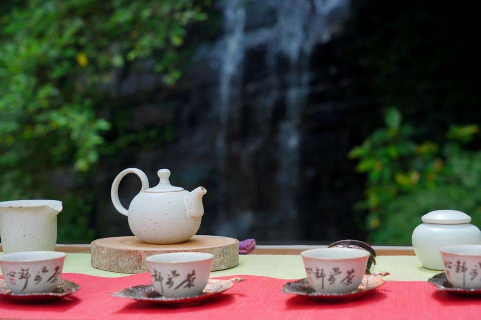 烤茶體驗是由老闆娘洪欣延小姐發想推出,藉由山區特有的桂竹放入茶葉進行烘烤,烤後始茶葉有著淡淡的桂竹清香,完美的融合茶葉的味道,不只成為大阿里山一大特色更成為金用心茶庒的招牌體驗活動;從傳統茶農漸漸轉型為觀光農業,再到推行體驗經濟結合旅遊食宿,從茶席文化體驗出發,深入到手做揉茶體驗,再演變成今天的竹筒烤茶體驗發想,這是晉揚欣的現在茶村體驗進行式。