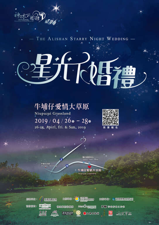交通部觀光局阿里山國家風景區管理處(以下簡稱阿里山管理處)今年特別推出阿里山神木下婚禮貳部曲-星光下婚禮,將於108年4月26-28日浪漫登場,一段浪漫的愛情故事,一場忘懷的世紀婚禮與你(妳)相約阿里山牛埔仔愛情大草原,在繁星熠熠的浪漫燈光下,讓我們一起點亮彼此生命中的星光,邁向未來的人生。