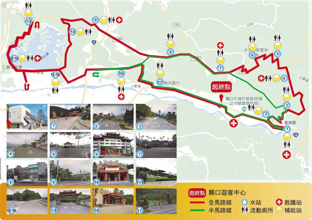 「2020第一屆阿里山神木下馬拉松」選定觸口遊客暨行政中心(阿里山管理處)盛大登場。為展現阿里山神木下馬拉松的熱情活力精神,本賽事規劃42K全馬組、21K半馬組、10K挑戰組及3K親子組四大組別,提供各界運動好手更多樣化的選擇;42K及21K將從觸口遊客暨行政中心起跑,沿線可飽覽大阿里山風景風光,如牛埔仔愛情大草原、觸口天長地久橋、仁義潭環潭公路林蔭大道、逐鹿部落;3K則以牛埔仔愛情大草原環狀路線為主,適合親子及慢跑新手一起參加。
