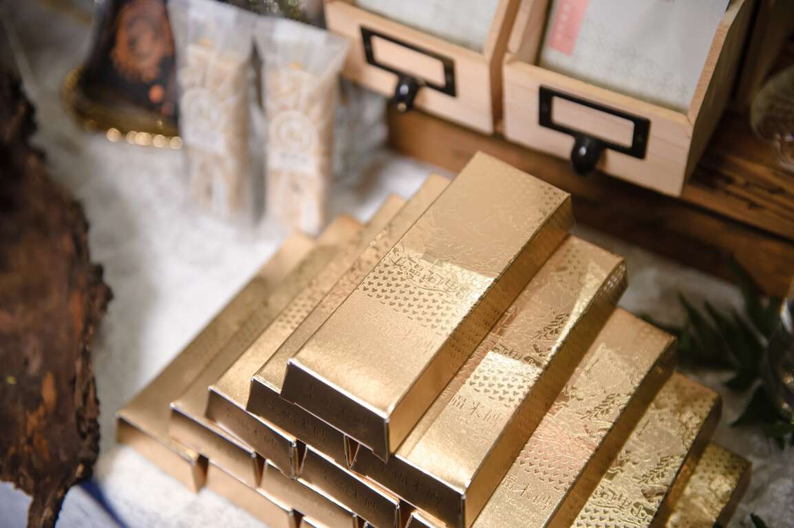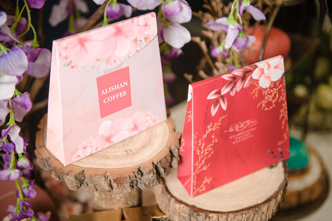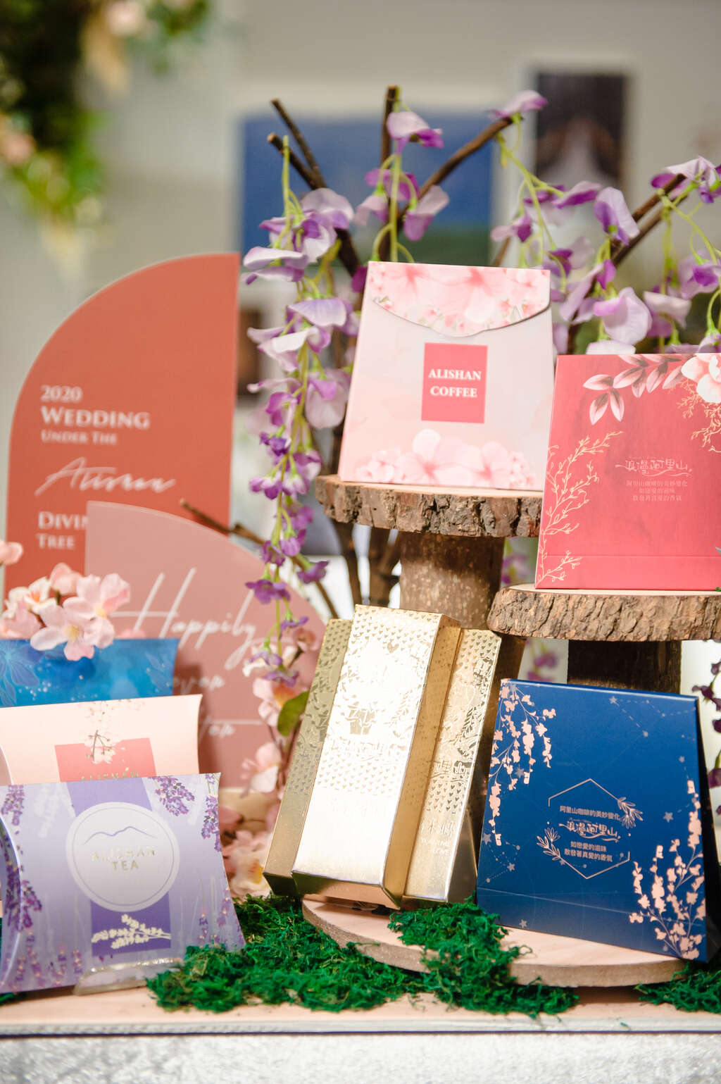 阿里山管理處以浪漫阿里山為品牌,融合櫻花、紫藤、星空等地景,開發茶、咖啡、幸福金磚等9樣阿里山婚禮小物搶攻婚慶市場,更在全台婚禮採購節廣受新人喜愛及好評,2020年創造出8,860份婚禮小物銷售佳績(金磚6,560份、茶2,050份、咖啡250份),期盼新人能透過台灣最在地的阿里山茶與咖啡,向每位親友分享幸福。