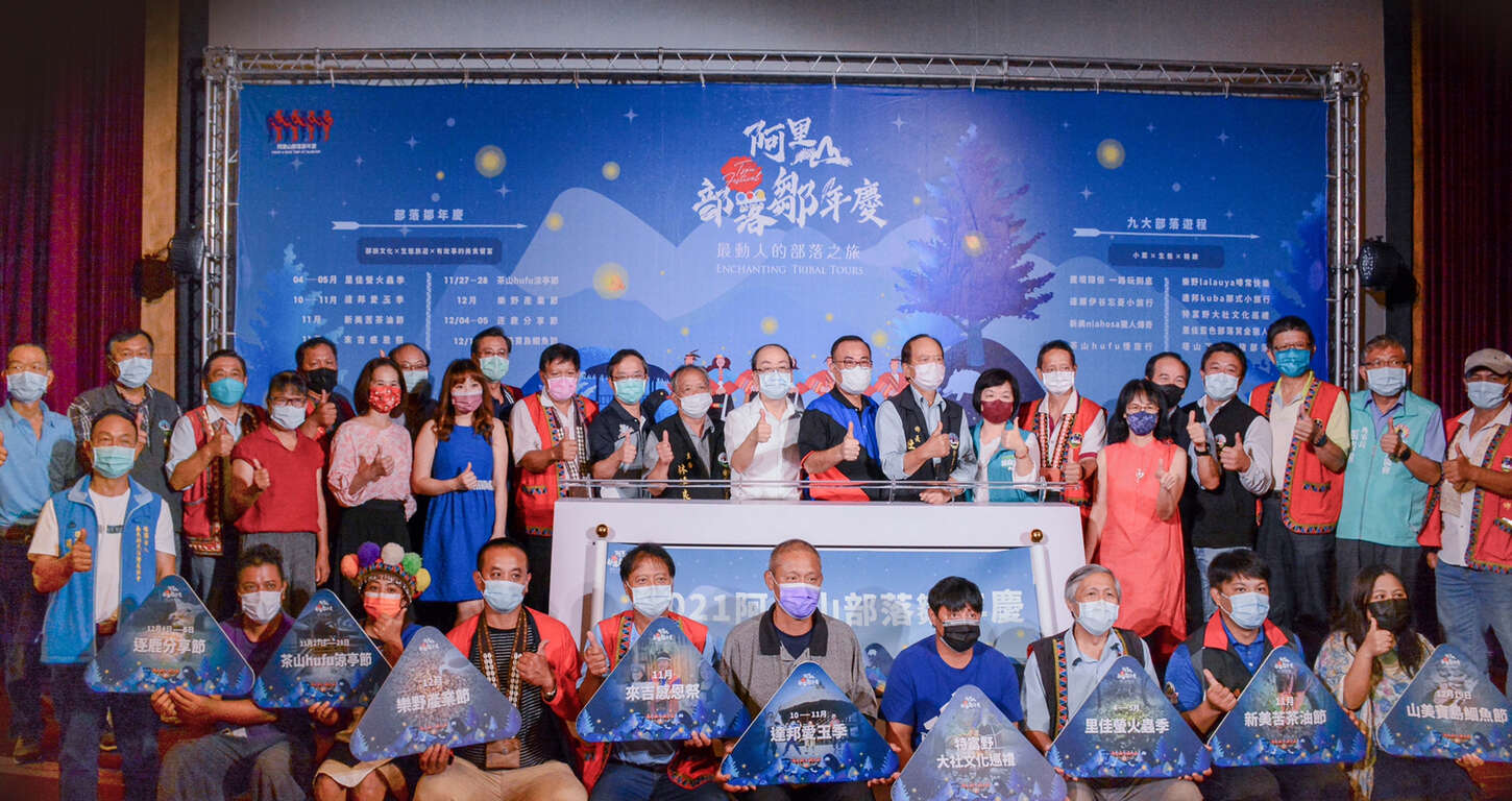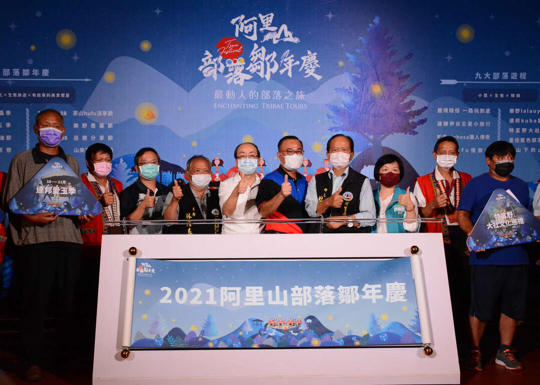 交通部觀光局阿里山國家風景區管理處(以下簡稱阿里山管理處)與鄒族九大部落聯合辦理「阿里山部落鄒年慶」,今日(110年10月8日)於觸口遊客中心盛大舉辦「阿里山部落鄒年慶」記者會,由鄒族茶山部落「努努耶舞團」以精采鄒族樂舞揭開活動序幕,熱情邀約各地好友們一起來阿里山部落做客,感受鄒族部落的迷人景致,並深入體驗在地多元的鄒文化魅力。在遵守防疫規定的前提下,記者會現場仍有許多貴賓蒞臨指導,包括林務局嘉義林區管理處張岱處長、林務局阿里山林業鐵路及文化資產管理處周恆凱副處長、嘉義縣文化觀光局宗金蘋秘書、阿里山鄉公所杜力泉鄉長、梅山鄉公所田清標秘書、嘉義縣警察局中埔分局吳俊德分局長及鄒族部落頭目、轄內各社區發展協會與相關產業公協會理事長、總幹事等,讓活動現場熱鬧非凡。