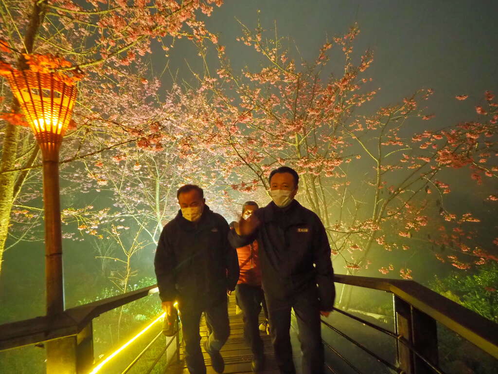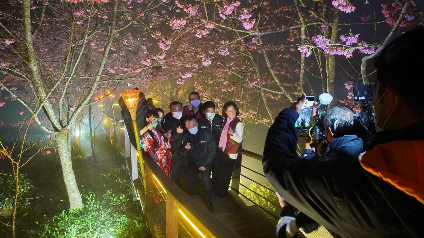 台18線阿里山公路今年初春在前幾天凜冽的寒風吹彿下,沿路的山櫻等櫻花陸續綻放,美不勝收。交通部觀光局阿里山國家風景區管理處(以下簡稱阿里山管理處)延續這幾年的賞櫻熱潮,特別在今日(2月24日)繁花盛開的石棹舉辦石棹春櫻夜活動,浪漫夜、櫻姿美、櫻花樹下品茶香,讓到訪遊客在石棹櫻之道兩側山櫻及昭和櫻盛開的景緻下感受今年初春的美麗。