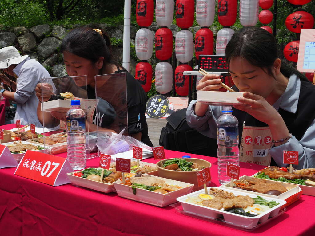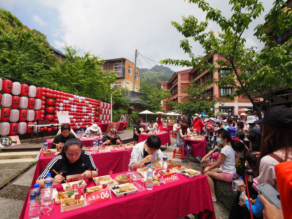 今日(4月10日)於奮起湖展演場熱鬧舉辦的「奮起湖便當節主題活動」包含「奮起湖便當美學PK賽」及「奮起湖便當大胃王挑戰賽」等活動,則以趣味競賽方式讓遊客體會山城常民的飲食生活。「奮起湖便當美學PK賽」共有分成親子丼組、甜甜豆棗組和香香米飯組,現場有45組參賽者運用奮起湖當地食材做成的便當料理內既有菜色,以美學巧思進行主題擺盤趣味創作,為奮起湖便當增添美味及美觀之新意境;親子丼組評審獎由「通往夕陽的火車」獲獎、人氣獎由「可愛的寶貝便當」獲獎;甜甜豆棗組評審獎由「百年好盒Love Life」獲獎、人氣獎由「希望隊」獲獎;香香米飯組評審獎由「便當便當」獲獎、人氣獎由「畚箕吃飯飯」獲獎;「奮起湖便當大胃王挑戰賽」部分,女子組共13名參賽者,男子組共20名,包含網紅臺灣大胃王丁丁、吃貨豪豪都受邀一同來挑戰30分鐘品嘗美味的奮起湖8家便當職人之料理,透過現場緊張刺激的競賽及網紅直播,讓遊客感受山城熱鬧的觀光氛圍。