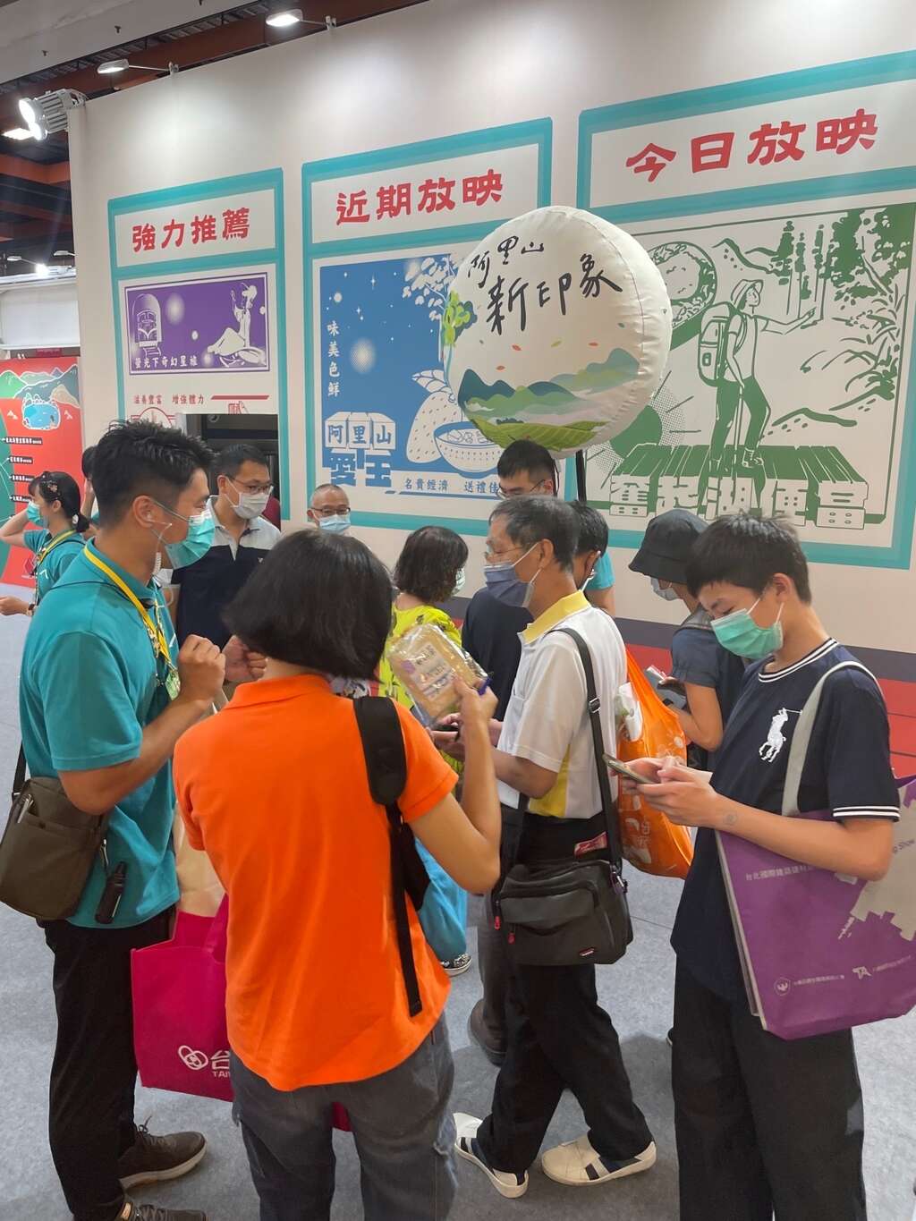 除了國家風景區主題館外,更把大阿里山觀光圈、235區域觀光圈及大草嶺觀光圈嚴選美食快遞到會場,有在嘉義最著名小吃林聰明砂鍋魚頭、諸羅特色料理的草行居、來自阿里山的特富野部落拉拉克斯莊園蜂蜜、來自大草嶺的盈盈農圃的椴木香菇及苦茶油、生力農場的阿里山高山茶、鄒族部落茶山風味經典好物及最佳設計伴手禮「家鄉嘉箱」的半畝田牛肉乾、渼橘客果醬、噴水火雞肉飯、壺豆花、新台灣餅舖、嘉冠喜、上紅丸梅子及朱家麻花捲等。