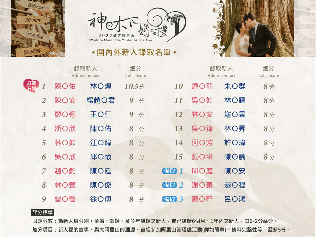 2022神木下婚禮-新人錄取名單出爐囉!