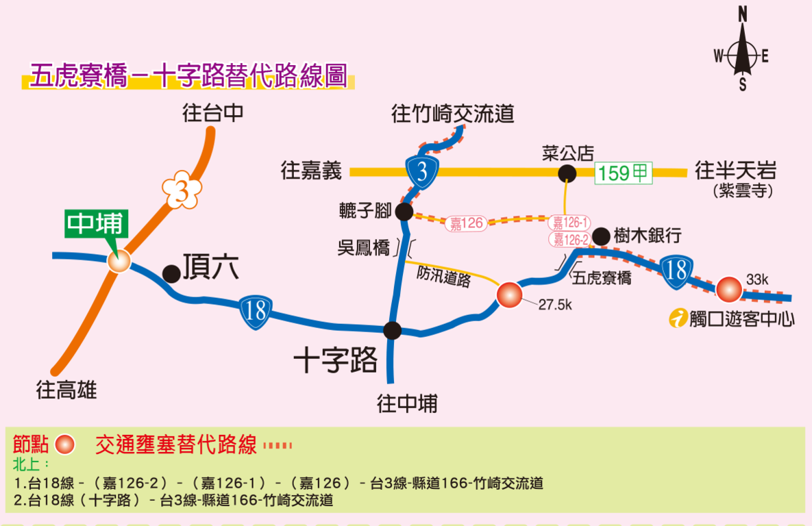 有關台18線鄰近疏運措施,五虎寮橋–十字路替代路線圖