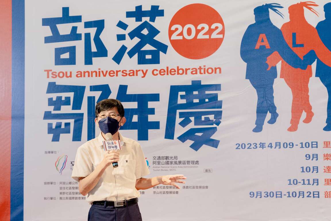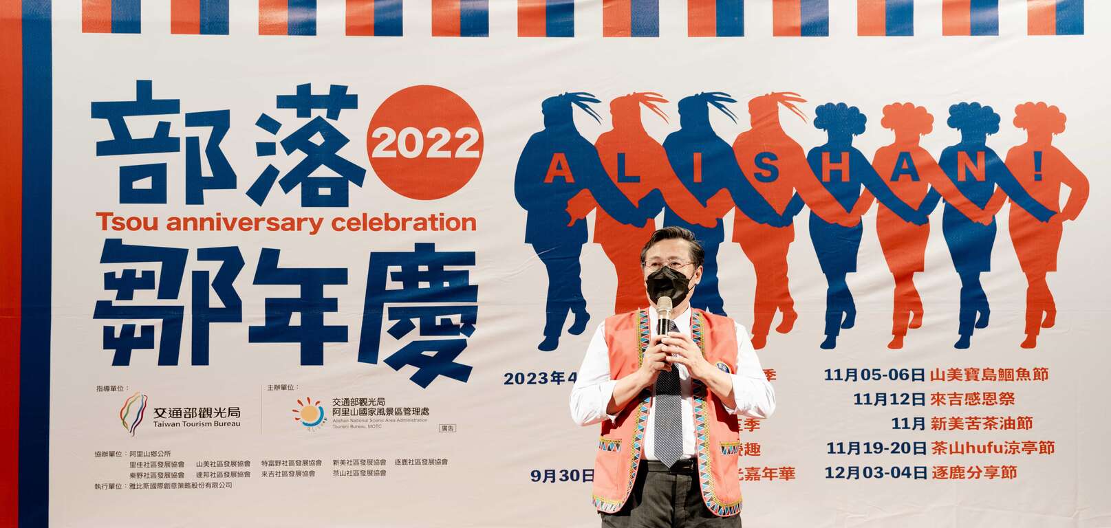 交通部觀光局阿里山國家風景區管理處(以下簡稱阿里山管理處)與鄒族九大部落聯合辦理「阿里山部落鄒年慶」,今(111年9月8日)於觸口遊客中心盛大舉辦「2022阿里山部落鄒年慶」記者會,來自阿里山鄒族的「風笛euvuvu表演藝術團」以精采鄒族樂舞揭開活動序幕,熱情邀約各地好友們一起來阿里山部落做客,感受鄒族的迷人景致與風采,並深入體驗在地多元的鄒文化魅力。現場在立法院伍麗華委員莊麗華特助、原住民族委員會汪啟聖鄒族族群委員、交通部公路總局第五區養護工程處郭清水處長、行政院農業委員會林務局嘉義林區管理處康素菁課長、行政院農業委員會阿里山林業鐵路及文化資產管理處代表與會、嘉義縣阿里山鄉民代表會汪之龍副主席、嘉義縣阿里山鄉公所杜力泉鄉長、嘉義縣阿里山鄉農會劉家顯總幹事、有限責任嘉義縣原住民逐鹿社區合作社與會代表、嘉義縣民宿發展協會簡坤瑩理事長、阿里山休閒農業發展協會林東翰理事長、社團法人嘉義縣茶文化協進會莊玉端理事長、嘉義縣咖啡產業發展協會鄭虞坪理事長、嘉義縣觀光協會施皓中理事長、嘉義縣新住民茶藝協會魏珍群理事長、嘉義市旅館商業同業公會李啟光理事長、鄒族部落頭目、轄內各村社區發展協會及村里長與各公協會以及各媒體先進等貴賓共同參與為部落鄒年慶活動揭開序幕。