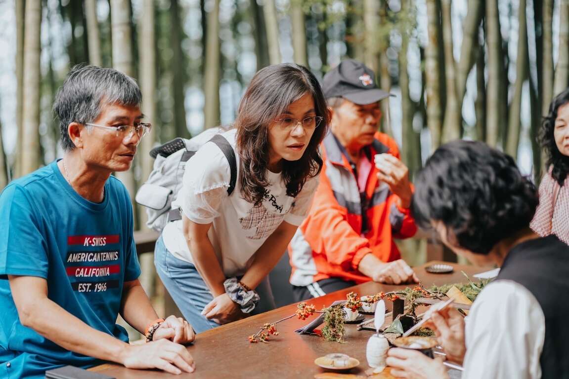 整場活動由在地茶人以及居民去共同創作,阿里山管理處將居民的力量凝聚起來,綻放社區新的美學生命力。來到梅山鄉瑞峰社區,隨處可見縱橫交錯、阡陌相連的茶樹與茶園,從龍宮瀑布到1314觀景台,有竹林、有雲海、有晨光。從茶工廠的武市茶桌鏗鏘作響、到茶藝師謙柔侍茶的竹林茶席,瑞峰社區遺世獨立在阿里山一隅曖曖含光。無論是過客也好,長佇也行,仍期許帶領各方旅人取瑞峰的光,許是採茶體驗,許是茶席品茗,又或許是農家熱情的招待環節,都可以讓心微微的觸動,社區居民的一抹微笑與山林氣息的美好同樣珍美。