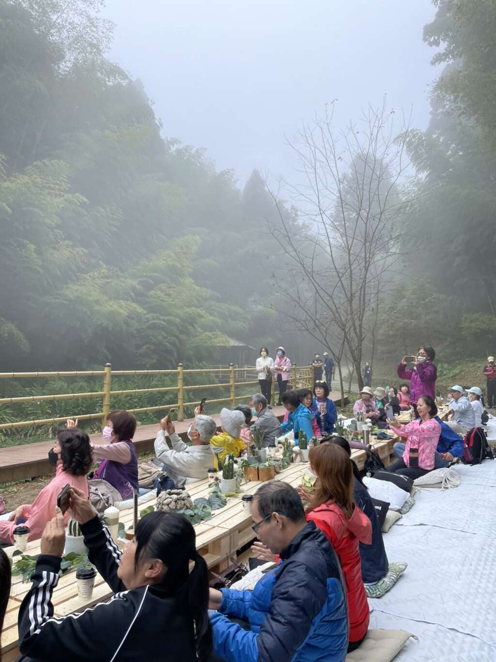 今日參與的貴賓有行政院農業委員會水土保持局南投分局陳榮俊分局長、立法院劉建國立委辦公室林吉芳副執行長、雲林縣政府文化觀光處蘇建蒼副處長、草嶺村陳兵通村長、草嶺社區觀光發展協會劉文房理事長、草石山休閒農業協會賴郁憲理事長、樟湖社區發展協會林啟顯理事長及草嶺生態地質國民小學蔡鳴哲校長等在地協會及組織共襄盛舉,本次活動以五感森林體驗出發,透過視覺、聽覺、味覺、觸覺、嗅覺及浸浴在森林芬多精的整體氛圍中,深入林木間、聚落間乃至常民間,帶領旅客遊歷在自然的環境中,感受陽光、水、植物的療癒,品嚐在地土壤孕育的甘醇蔬食,滿足身心靈健康的追求與享受。