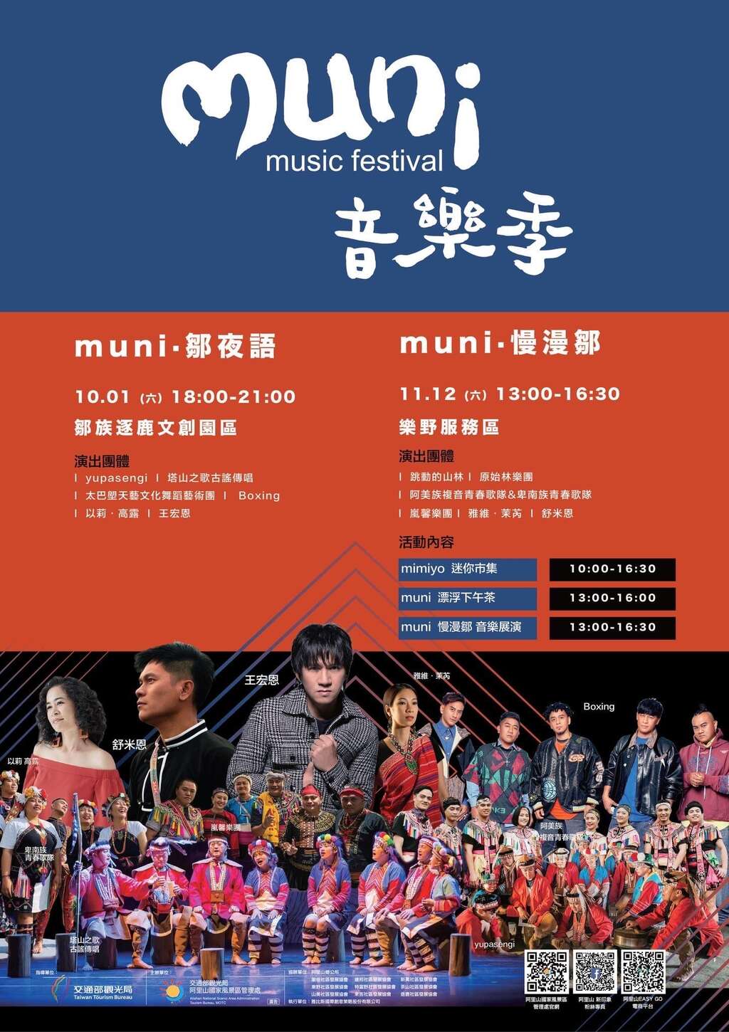 阿里山管理處洪維新處長表示,自105年度起,本處即開始辦理原住民傳統樂舞活動,從早期的「明日之星鄒族樂舞競賽」,到目前的「muni音樂季樂舞交流活動」都是以鄒族樂舞文化為主體,透過歌謠或舞蹈激發創作力,並與全台最優秀的原民表演團隊交流,彼此分享屬於臺灣原住民族最動人心弦的美聲歌謠。今年最後一場的muni音樂季,不僅在台18線61K處層巒疊翠雲霧繚繞的美景中,可欣賞最精彩的原民樂舞展演,更可享受濃濃的鄒式下午茶風情,期待疫情解封之後,有更多的國內外旅客一起來體驗、來感受原住民的熱情。