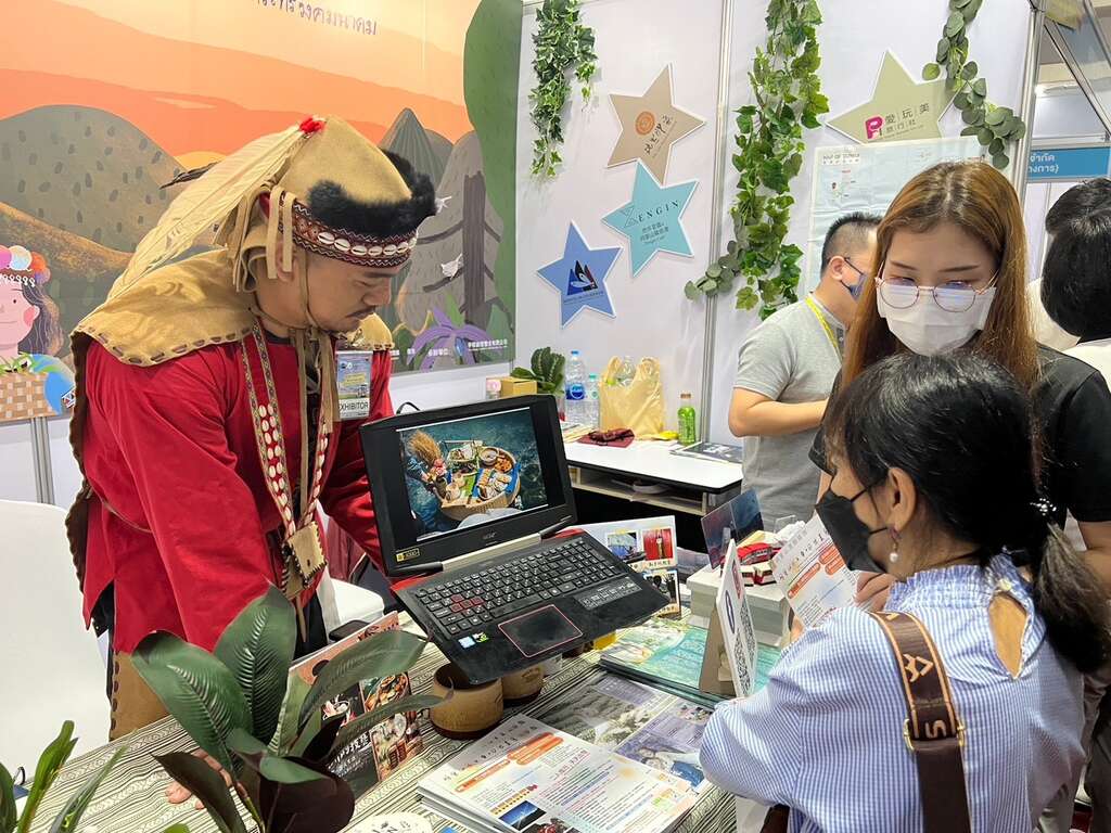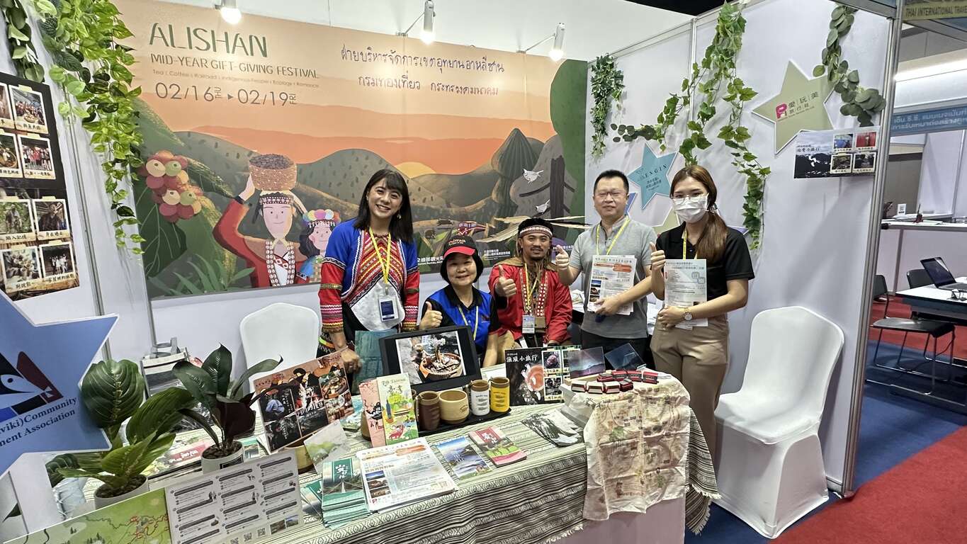 今(2023)年是疫後解封的第一年,泰國旅展更是阿里山管理處疫後第一次帶著沉積兩年的業者出訪的國外旅展,現場主動推介六大主題(茶、咖啡、原民、鐵道、生態、浪漫)旅遊主題等行程,透過特色體驗、浪漫婚拍遊程、原民樂舞、部落特色遊程及旅行社推廣等,將阿里山的精采原汁原味帶到泰國呈現。