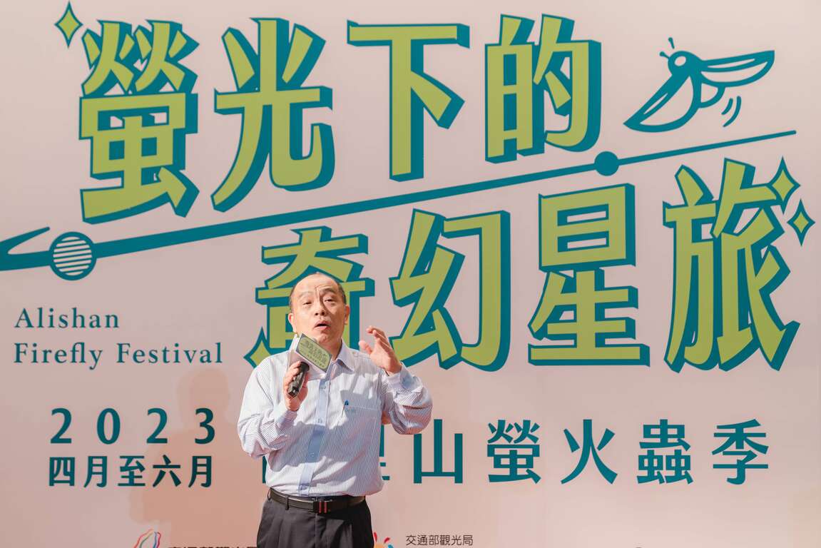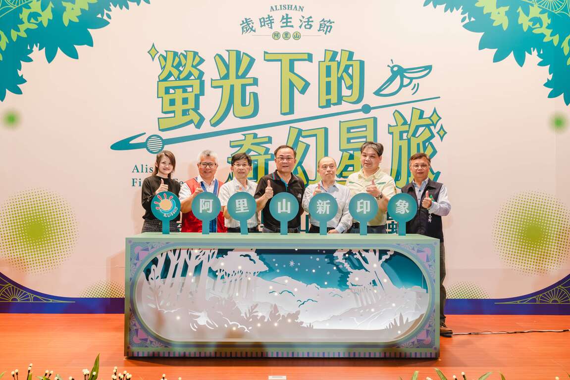 熠熠閃亮的四月,交通部觀光局阿里山國家風景區管理處(以下簡稱阿里山管理處)於今(14)日舉辦「螢光下的奇幻星旅」,現場有阿里山管理處洪維新處長、交通部公路總局第五區養護工程處郭清水處長、行政院農業委員會水土保持局南投分局陳存凱副分局長、行政院農業委員會林務局阿里山林業鐵路及文化資產管理處竹崎車站吳漢恩站長、嘉義縣議會莊信宗議員、陳信文議員服務處主任、嘉義縣文化觀光局沈雅茹科長、嘉義縣阿里山鄉公所高瑞芳鄉長、嘉義縣番路鄉公所蕭博勝鄉長、嘉義縣阿里山鄉民代表會安松子秘書、嘉義縣阿里山鄉農會劉家顯總幹事、嘉義縣梅山鄉農會吳信忠理事長及轄內各村社區發展協會及村里長與各公協會與會等貴賓見證下揭開啟動儀式,正式宣告2023年阿里山的螢火蟲季開跑啦!