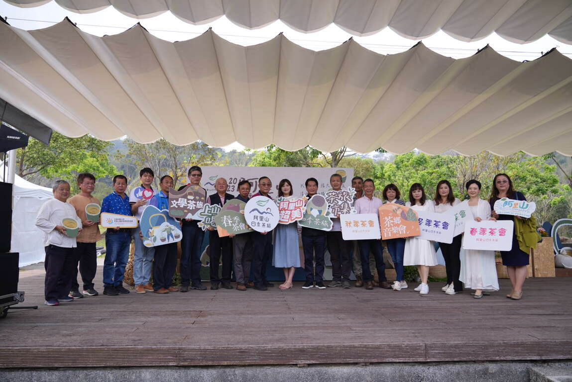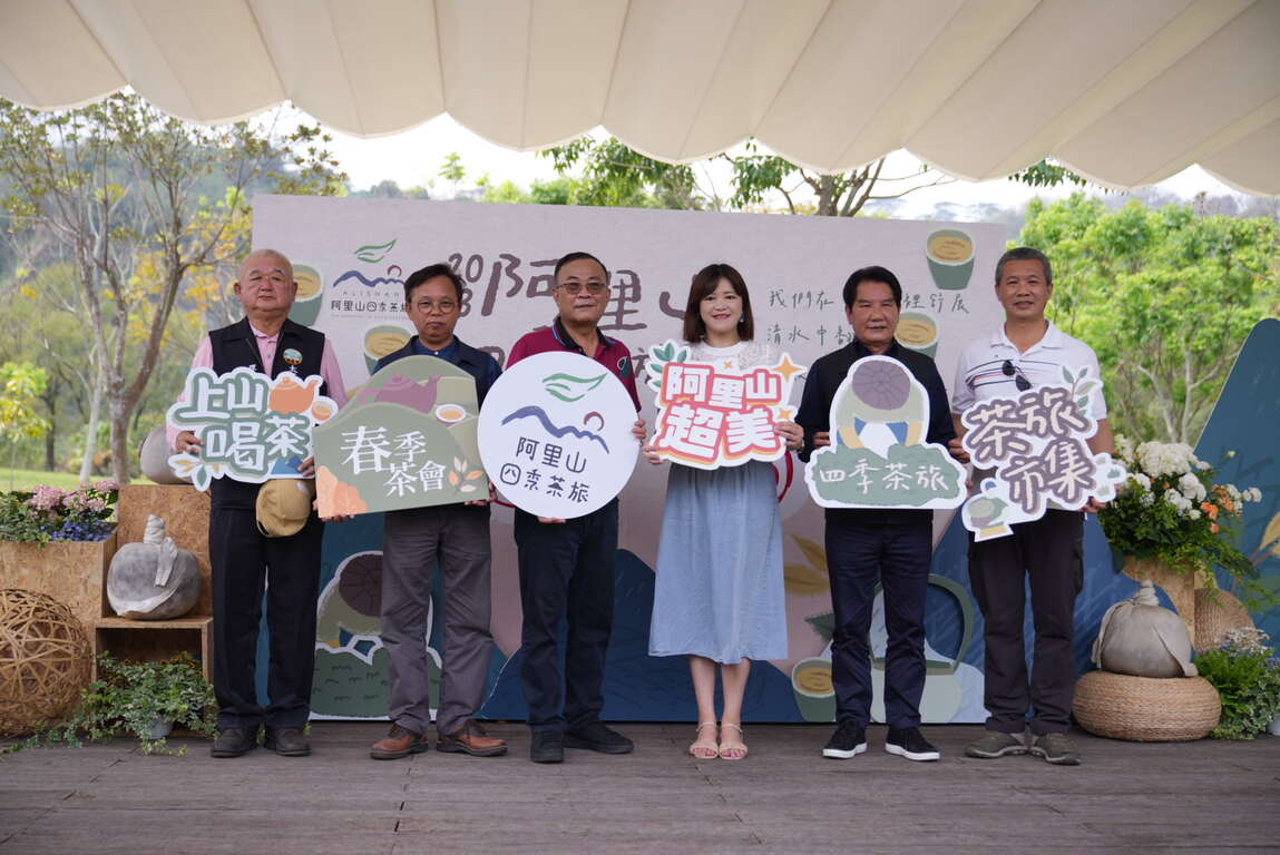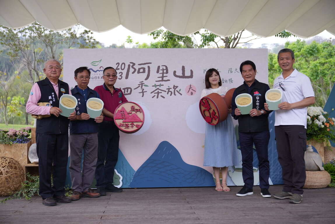交通部觀光局阿里山國家風景區管理處(以下簡稱阿里山管理處)打造阿里山四季茶旅活動,於今日(4月22日)及明(23)日在觸口的牛埔仔愛情大草原辦理阿里山四季茶旅-春季茶會,記者會現場特別邀請貴賓進行春季茶會啟用儀式,由阿里山管理處洪維新處長、行政院人事處張美娟副處長、嘉義縣文化觀光局徐佩鈴局長、嘉義縣番路鄉公所蕭博勝鄉長、嘉義縣梅山鄉公所林俊謀鄉長、嘉義縣番路鄉農會趙幸芳總幹事、嘉義縣阿里山鄉農會劉家顯總幹事、嘉義縣梅山鄉農會吳信忠理事長及轄內各村社區發展協會及村里長與各公協會與會等貴賓共同舉行茶香拾光啟動儀式,宣告112年度阿里山四季茶旅春季茶會盛大展開。