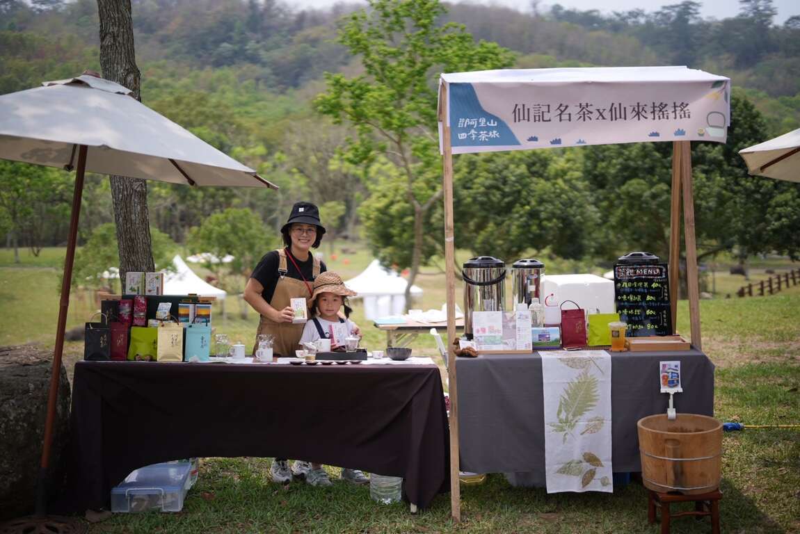 此外,生活化的茶旅創意市集則以當地茶業者為主,除了阿里山最知名的茶葉外,與茶相關的吃喝玩樂都涵蓋在創意市集當中,包括創意茶飲品牌-仙記茗茶X仙來搖搖,將廣受好評的阿里山茶加入手搖飲的元素,冰涼的好滋味搭配阿里山茶香,是廣受好評的茶飲新滋味;還有甜茶小姐miss.sucréthé,是阿里山的青年回鄉後,利用茶香結合西點,如:手工茶餅乾、香檸紅玉瑪德蓮等,希望透過茶香的甜點能帶給人療癒的新滋味,更有許許多多攤位歡迎大家來逛逛。