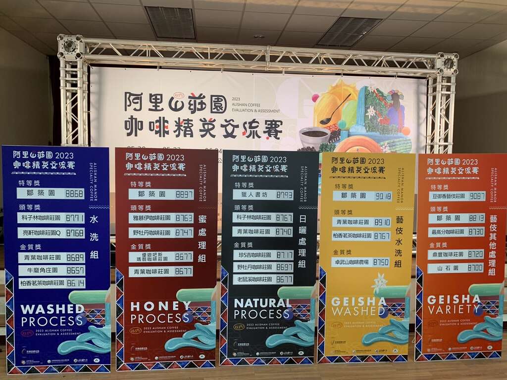 由交通部觀光局阿里山國家風景區管理處(以下簡稱阿管處)、行政院農業委員會水土保持局南投分局與嘉義縣政府共同主辦,嘉義縣咖啡產業發展協會執行,堪稱國內規模最大、競爭最激烈的咖啡生豆評鑑賽-嘉義縣阿里山莊園咖啡精英交流賽自5月15日繳交生豆開始,歷經物理篩選、初賽、複賽到決賽,一連串繁雜又嚴謹的評鑑程序,得獎名單於5月24日上午出爐。