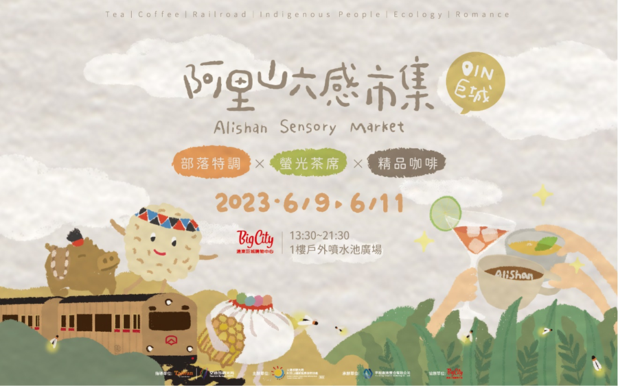 交通部觀光局阿里山國家風景區管理處(以下簡稱阿里山管理處)阿里山 EASY GO 年中好禮分享節繼5月臺北場次圓滿落幕,6月來到新竹遠東巨城購物中心1樓戶外廣場,這次攜手20家阿里山在地品牌於6月9日(星期五)至6月11日(星期日),每日13時30分至21時30分,舉辦「阿里山六感市集in巨城—部落特調×螢光茶席×精品咖啡」特色文創市集,民眾可從悠閒的午茶時光延續至晚上的浪漫市集;在市集期間更推出三款深具阿里山代表性飲品「茶、咖啡、部落調飲」等,打造主題之夜並結合週邊文創邀約遊客在購物、逛街行程中放慢腳步,細細品味阿里山風格物產與文化。