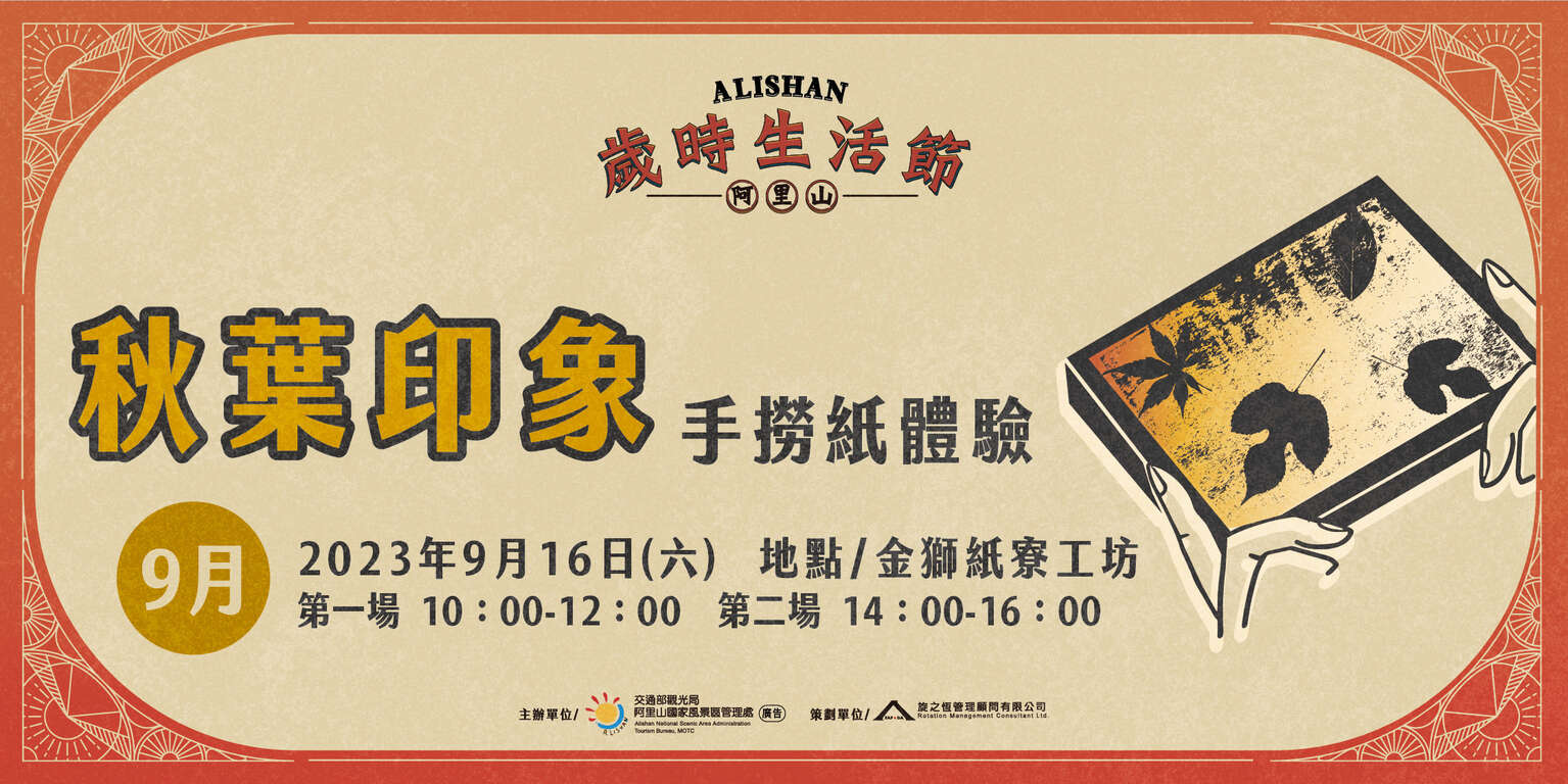 金獅社區完整保存過去傳統造紙項目文化,透過金獅社區的造紙技藝結合秋收林間植物的色彩印象,以手撈紙的體驗中感受舊時職人日常,運用阿里山上的花草為襯底,製作出自己屬於的獨特紙張。