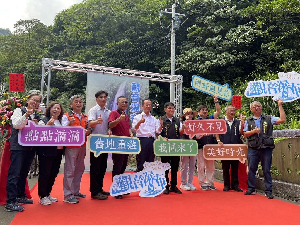 翁章梁縣長表示,近期觀音瀑布開園訊息露出勾起四、五年級生重遊的回憶,觀音瀑布的重新出發除舊地重遊客外,相信在合作社的營運下,也能讓新一代有新的鏈結,並讓此處成為新亮點造成新熱潮。