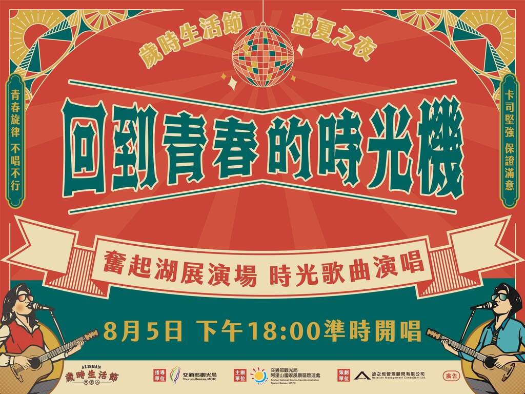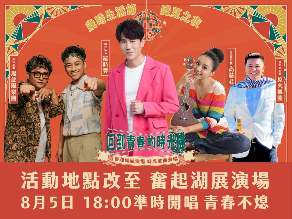 因受到颱風卡努(KHANUN)影響,8/5(六)奮起湖地區降雨狀況不穩定,為了避免影響活動品質以及為呈現給您最佳安全的聆聽饗宴,原於奮起湖老老街舉辦回到青春的時光機歌曲演唱,活動地點改至「奮起湖展演場」進行演出。