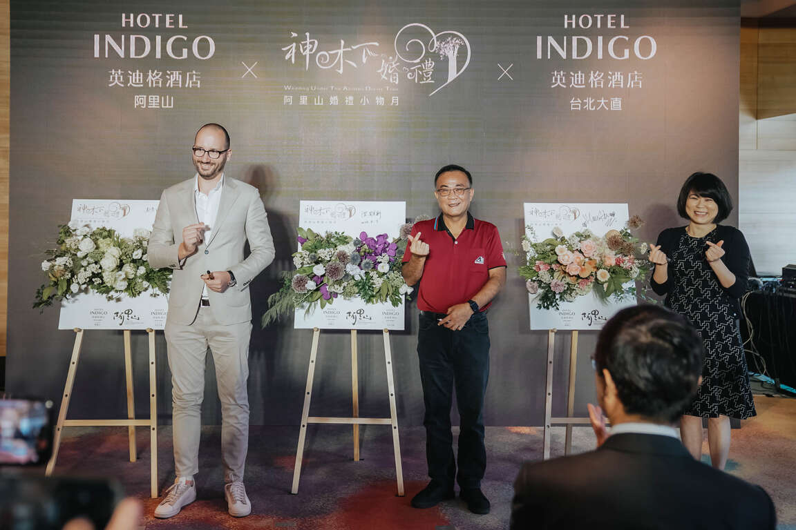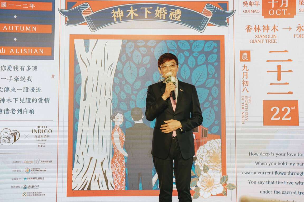 今日在交通部觀光局林信任副局長、阿里山管理處洪維新處長、農業部林業及自然保育署嘉義分署阿里山工作站賴龍輝站主任、南投縣政府觀光處林秀梅副處長、阿里山英迪格酒店Jakub Sippl總經理、大直英迪格酒店胡愛偉總經理、九族文化村黃瑞奇行銷企劃經理、轄內各村社區發展協會及村長與各公協會以及各媒體先進等貴賓共同為神木下婚禮記者會揭開序幕。