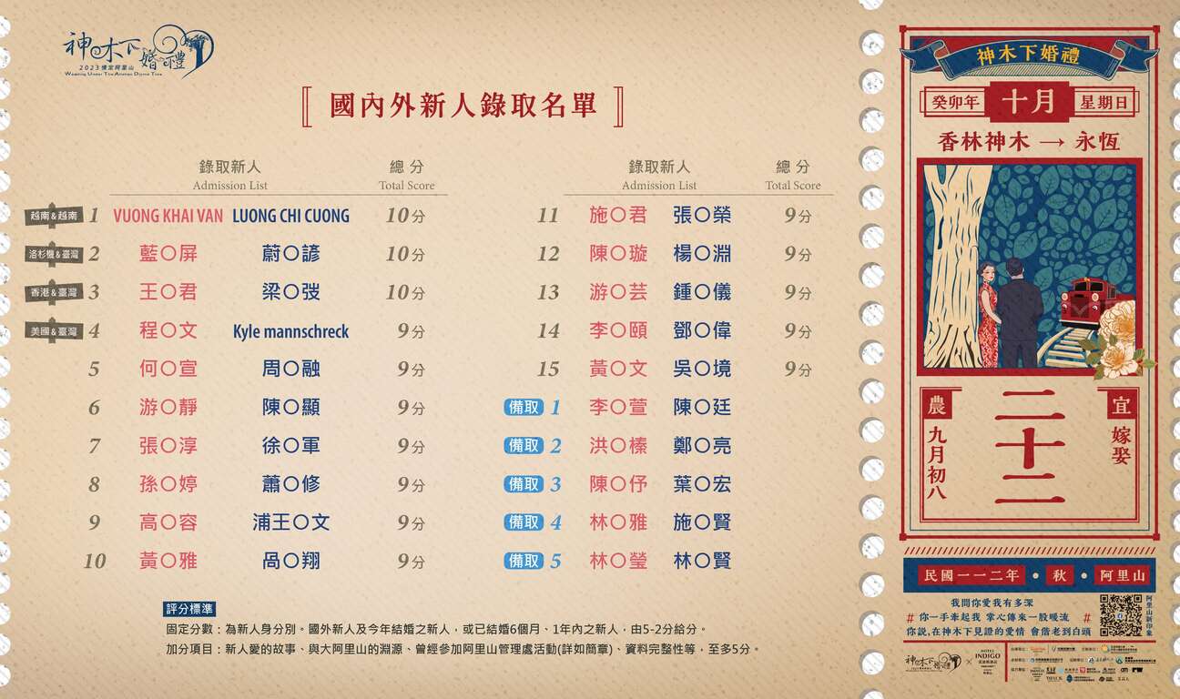 2023神木下婚禮新人錄取名單公告