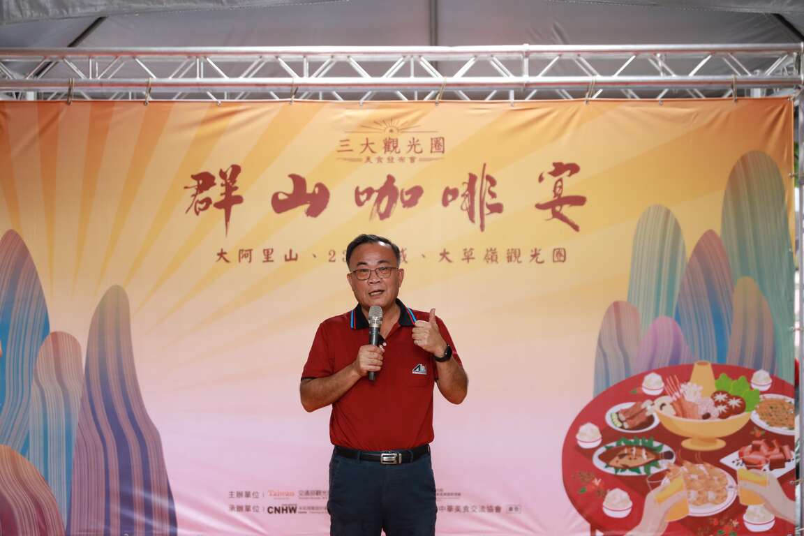 阿里山管理處洪維新處長表示三大觀光圈品味12套咖啡饗宴,咖啡餐餚不僅風味獨具,創作料理更是令人驚豔,從咖啡葉、果、殼、烘焙豆創意入菜將讓各位遊客發現咖啡料理的新世界,期待透過三大觀光圈的結盟,資源連結共享與合作,讓山上的咖啡產業,透過以嘉義市作為前店(市場),阿里山國家風景區和大草嶺地區為後村(產地),藉由市場與產地之間的交流,建立實質合作的新模式,讓咖啡產業更多樣化發展。