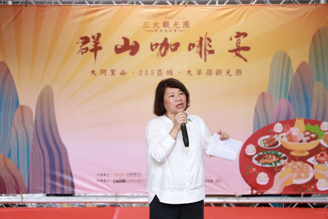 交通部觀光局阿里山國家風景區管理處(以下簡稱阿里山管理處)於今(112)年9月2日辦理「三大觀光圈-群山咖啡宴」發布會,現場由立法院王美惠委員服務處徐文志主任、劉建國委員服務處林吉芳秘書、農業部林業及自然保育署嘉義分署張岱分署長、阿里山林業鐵路及文化資產管理處周恆凱副處長、嘉義市黃敏惠市長率市府團隊張婉芬處長、田長沛處長、盧怡君局長及許懷群局長、嘉義市議會戴寧議員服務處陳凱富特助、雲林縣政府文化觀光處代表何宣瑩、阿里山管理處洪維新處長、三大觀光圈公協會代表以及觀光產業業者及現場遊客共同參與,現場雖然風雨不斷,但參與的貴賓及遊客熱情不減。