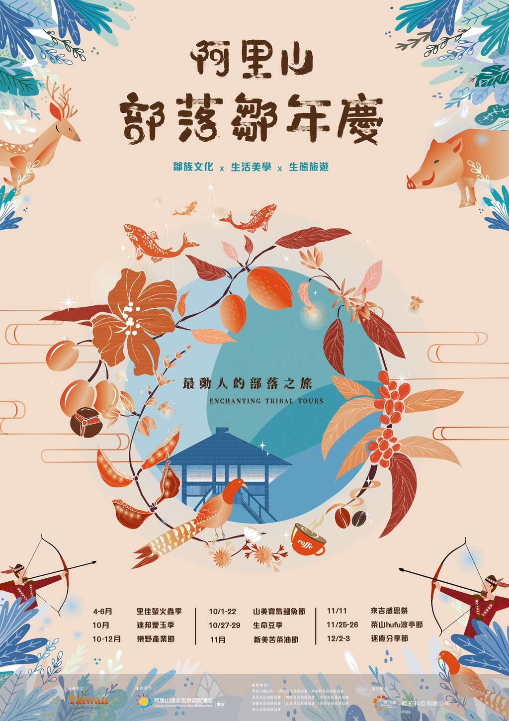 阿里山管理處於5-12月陸續推出阿里山九大部落新創遊程,精彩豐富的行程邀請國內外遊客一起來鄒族部落旅行,一起踏入鄒族生態及文化的懷抱,感受這片土地的魅力,一起共享阿里山的美好!更多活動內容詳情請至阿里山國家風景區官網或至「阿里山 新印象」粉絲專頁查詢;更多阿里山旅遊商品請至阿里山EASY GO電商平台選購。