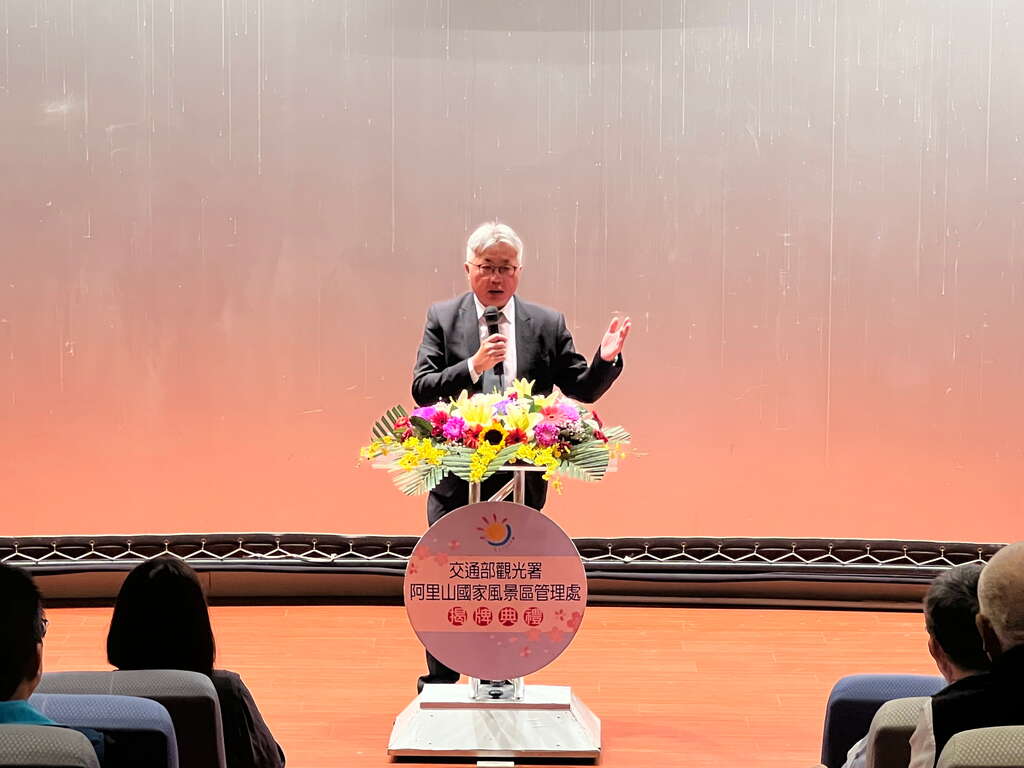 洪維新處長表示,阿管處成立於民國90年7月,草創時期山區觀光建設經費有限,尤其在921地震後亟需要振興當地的觀光經濟,阿管處的成立猶如一注活水,打通山區觀光產業的任督二脈,雖然歷經八八風災的重創,多年苦心經營成果一夕毀損,但在歷任處長精勵圖治下,以永續旅遊的經營理念,持續活絡在地觀光產業。從硬體設施面的觸口遊客暨行政中心的落成、文峰遊客中心及里佳資訊站等的新設、太興飛瀑的公共工程金質奬、環境教育場域的評鑑認證、到委外出租場域太平雲梯、鄒族逐鹿文創園區及竹崎鄉觀音瀑布園區的開園營運等;軟體服務面從行政院政府服務品質獎、金檔獎到產業行銷影片屢獲國際獎項肯定等,近年更將行銷推廣層面擴及嘉義縣市的大里山觀光圈、235區域觀光圈及雲林縣的大草嶺觀光圈,也引領轄內產業出席國內外旅展把產業推向國際化,帶動了疫後整個中部觀光產業的經濟全面復甦及提升。