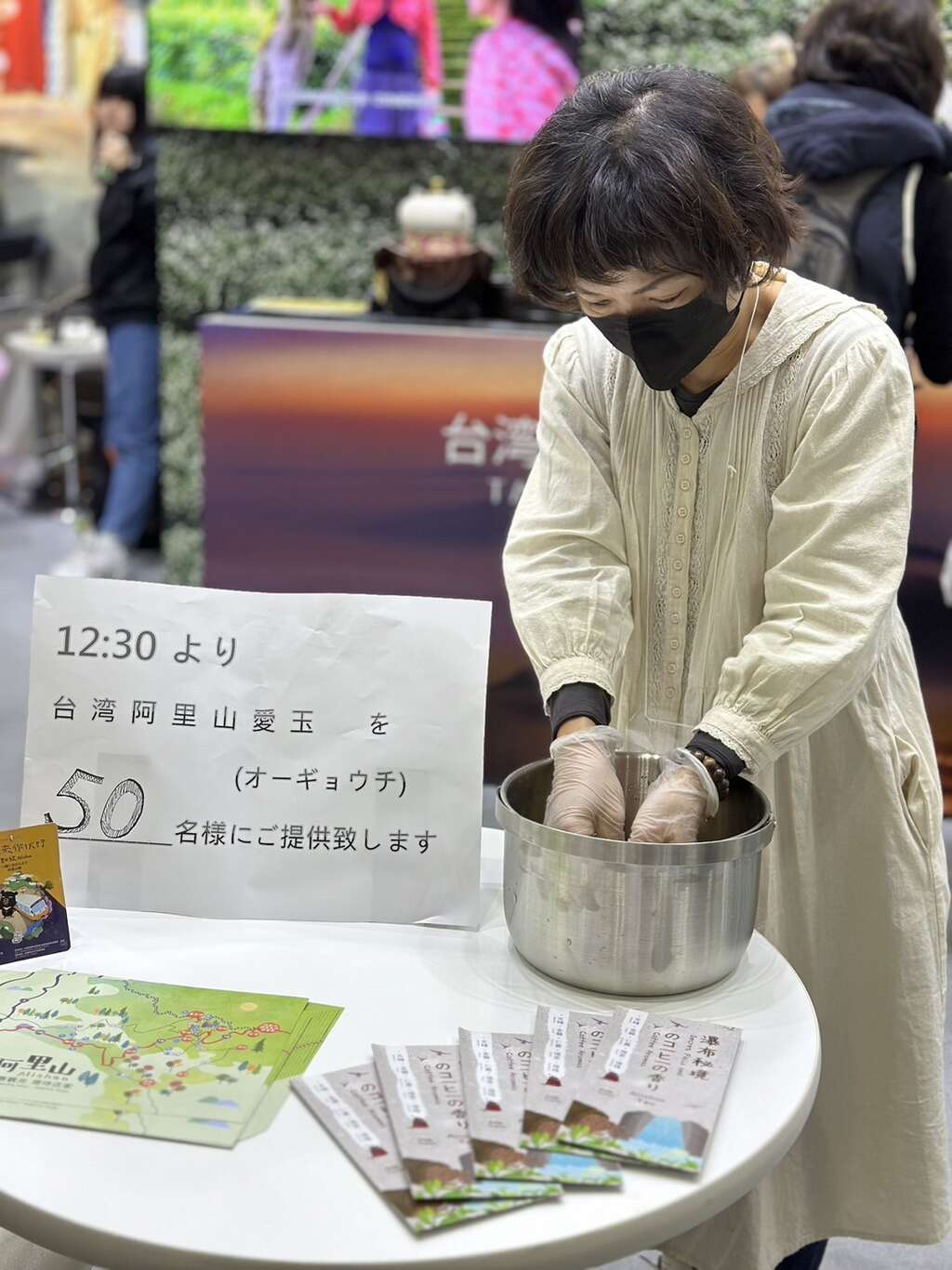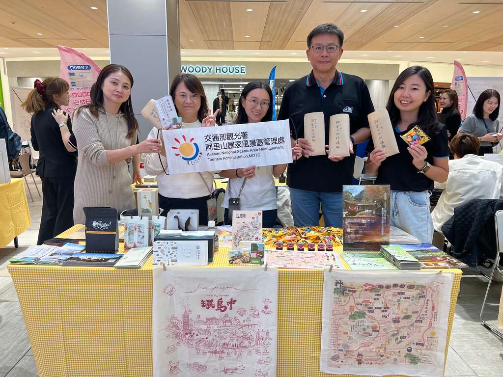 此次日本旅展,阿里山管理處除了精采呈現阿里山的六大主題外,更邀請日本在地企業花咲み荼合同会社一同參展旅展,花咲み荼合同会社社長谷口惠美子小姐以推廣臺灣茶聞名,2019年4月在日本開立臺灣茶高級茶飲店,大力推廣台灣茶,積極與阿里山茶農合作以高山茶品開發茉莉金萱、茉莉紅茶等花茶系列茶飲,目前已於日本市場上市銷售,這次旅展也促成了谷口小姐與阿里山業者茶供足的合作關係,將阿里山白茶推向日本市場。