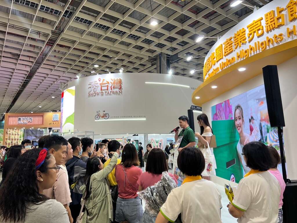 今年度「最佳展館」系綜合主題創意及空間設計、攤位精緻度與藝術性、空間整體感與友善度及綠色攤位與環保表現來評分,「花現Taiwan 行旅」獲得此殊榮,除期盼著國旅能再創高峰外,也期許加速國際旅客訪台旅遊的契機。活動現場,有來自澎湖管理處匯集15個觀光圈店家商品;日月潭管理處帶來的馬告香氛;大鵬灣管理處的鮮料理精美禮盒;西拉雅管理處的蕎麥麵及系列商品;茂林管理處的高雄觀光圈香蕉花檸檬咖啡等限量商品;北海岸及觀音山管理處的皇冠海岸觀光圈的台灣好行套票及遊程;東海岸管理處的樂遊台11線永續小旅行;花東縱谷管理處的綠點酒莊的限量金針花啤酒及氣泡水;雲嘉南管理處的鹹味浪潮電商平台;參山管理處的嵐田茶行;東北角管理處的八番坑茶坊及正福茶園的好茶;馬祖管理處的媽祖保佑運籤的創意活動;阿里山管理處的茶山部落小旅行。更有泰國遊客從交通部觀光署泰國辦事處粉絲專頁看到「花現Taiwan 行旅」宣傳海報前來一探究竟;也有遊客填寫問卷送限量帆布袋時驚呼帆布袋不吸引人,吸引人的是花現Taiwan行旅。