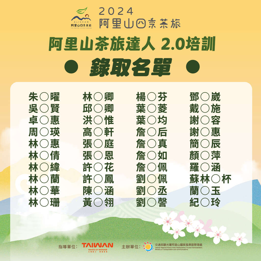 2024年阿里山茶旅達人2.0培訓-錄取公告